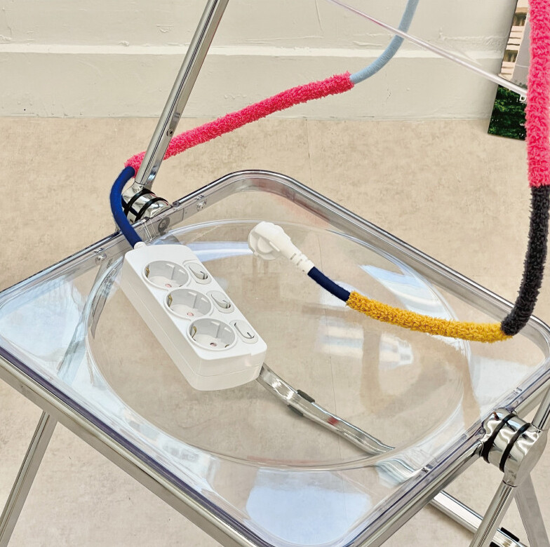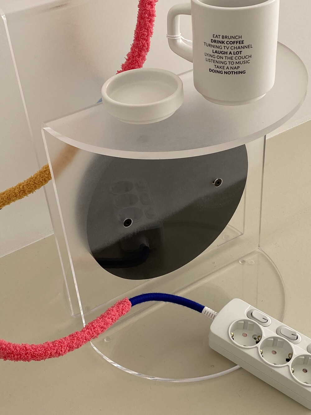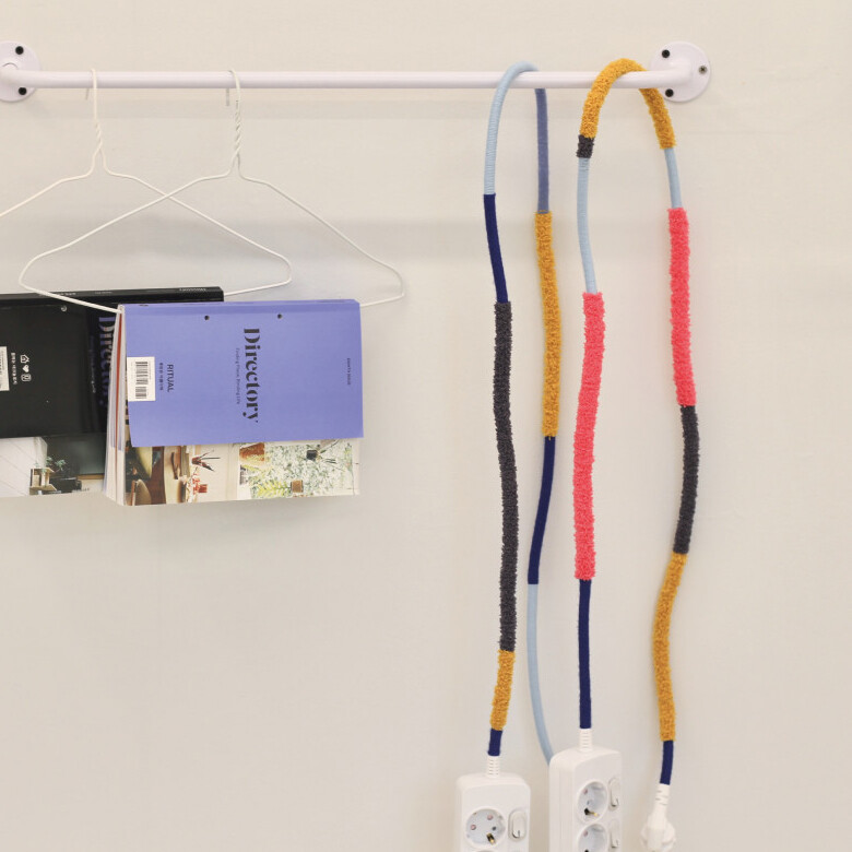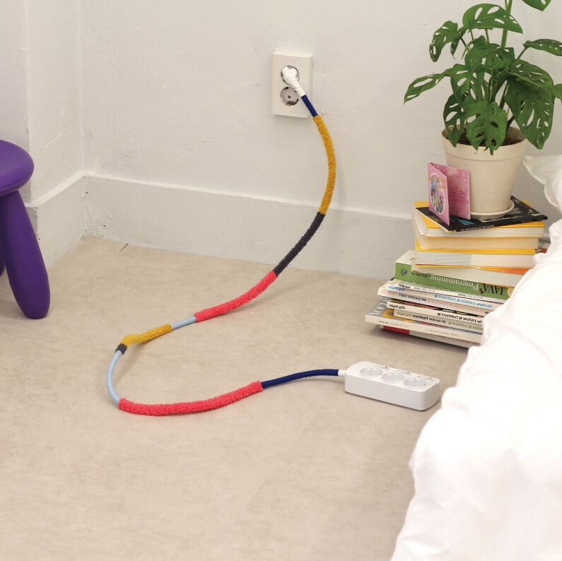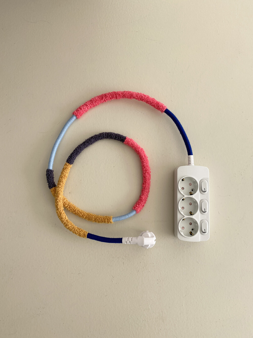 다양한 형태와 색감의 실을 이용해 제작한 핸드메이드 커스텀 멀티탭입니다. 심심한 형태의 멀티탭 선에 재미난 색감과 입체적인 형태를 더함으로써 어디에든 어울리는 인테리어 소품으로 탈바꿈했습니다.