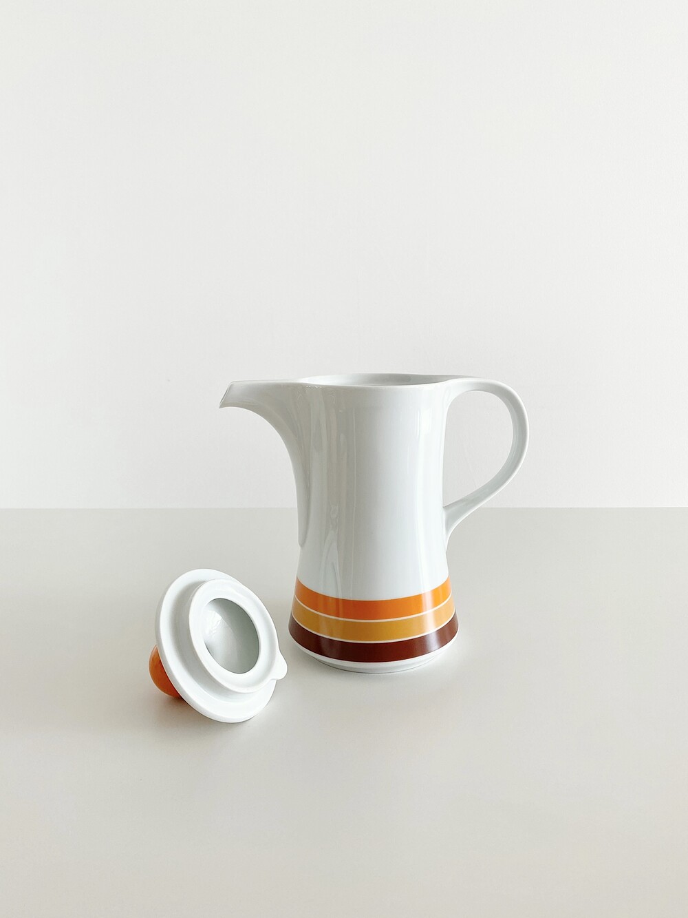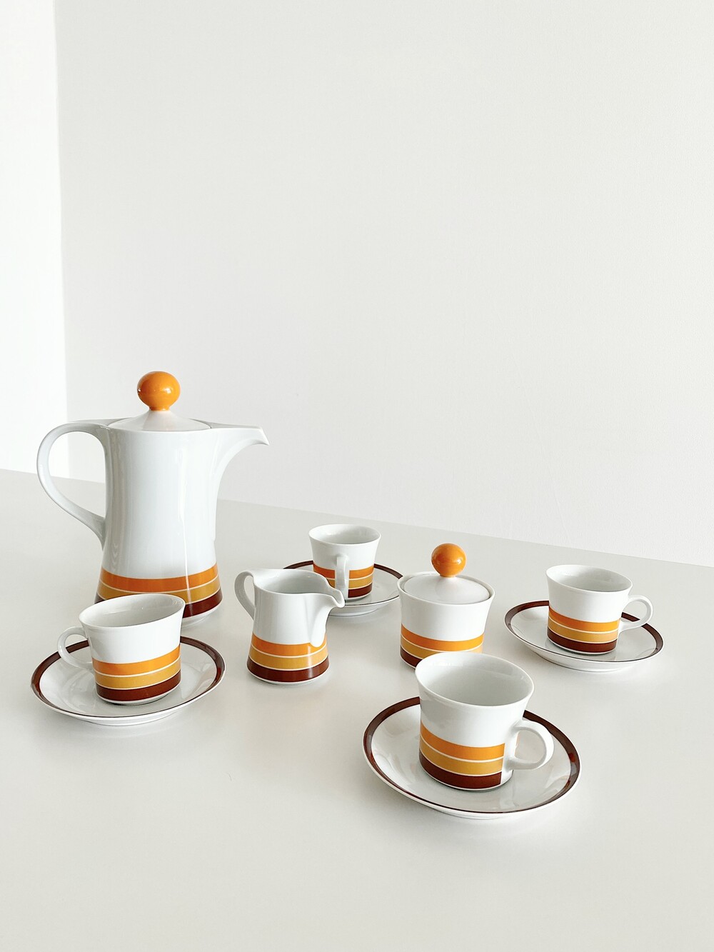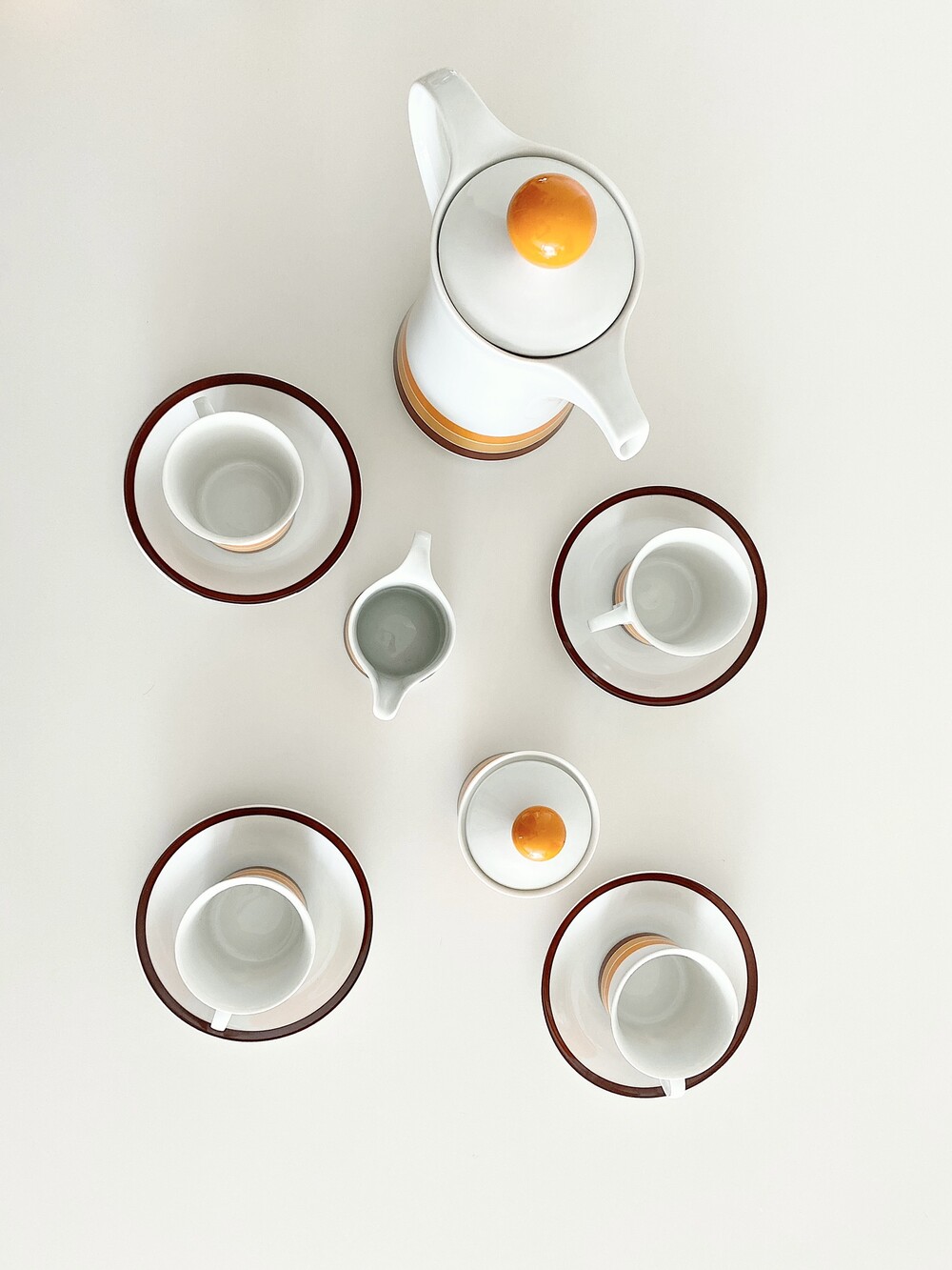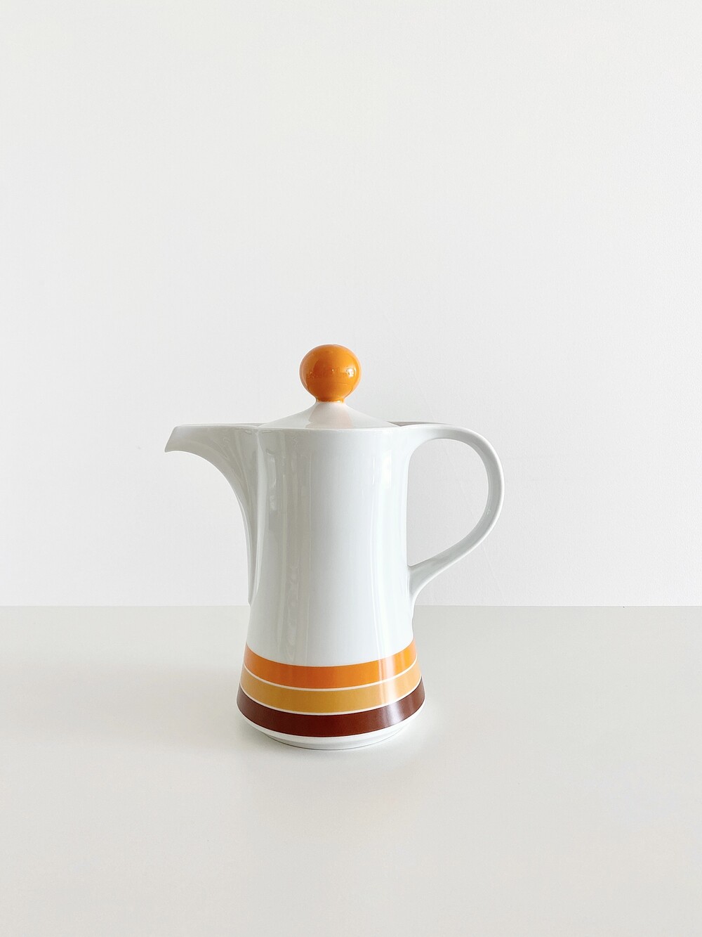 70년대 독일에서 제작된 미터타이히 바바리아 티팟 세트입니다. 미드센츄리 무드가 물씬 묻어나는 컬러 배색과 재미있는 실루엣이 돋보이는 제품입니다. 독일에서 시작된 미터타이히 바바리아는 2007년 터키 자본에 인수되어 이후부터 생산된제품은 독일에서 생산된 제품이 아니며 백마크에 Bavaria 표기가 없습니다. 그렇기에 더욱 소장 가치가 있는 제품입니다.