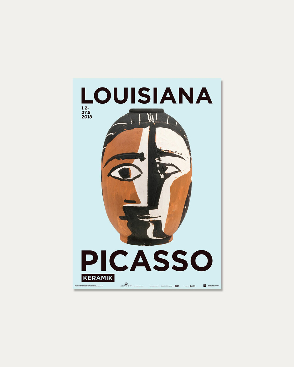 2018년 루이지애나 창립 60주년을 기념한 피카소의 세라믹 전시 포스터입니다. 이 전시에서는 1947년부터 1964년까지 루이지애나 미술관이 수집한 세라믹 작품을 선보이며 큰 화제를 모았습니다. 피카소의 그림 작품이 아닌 도예작품을 주제로 한 포스터로 소장 가치가 있습니다.