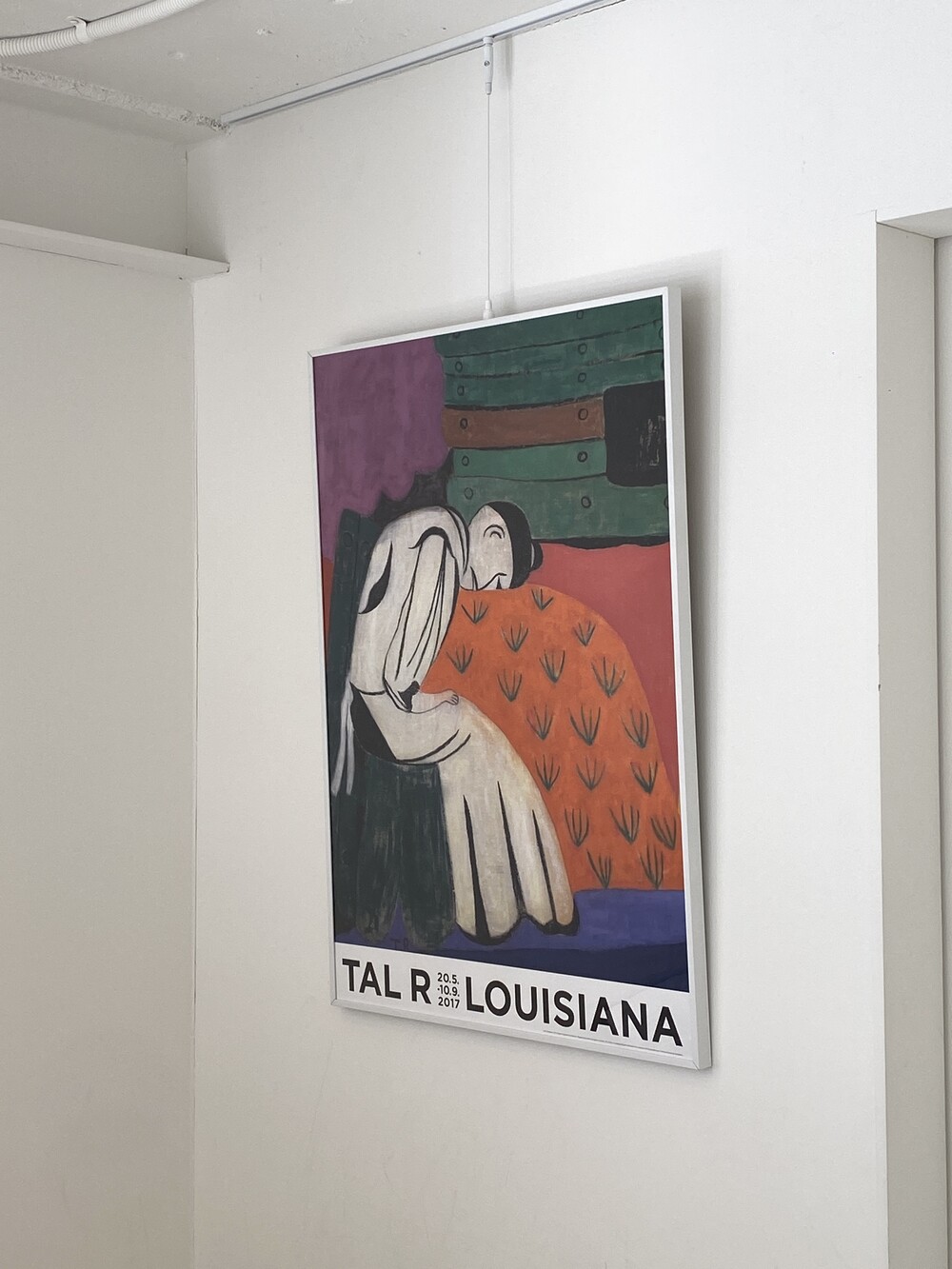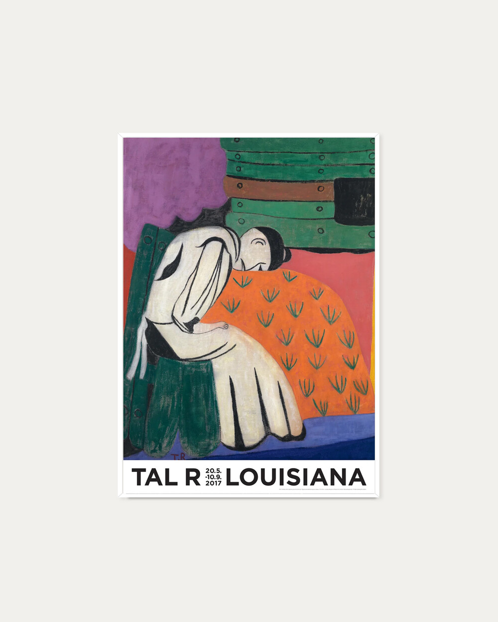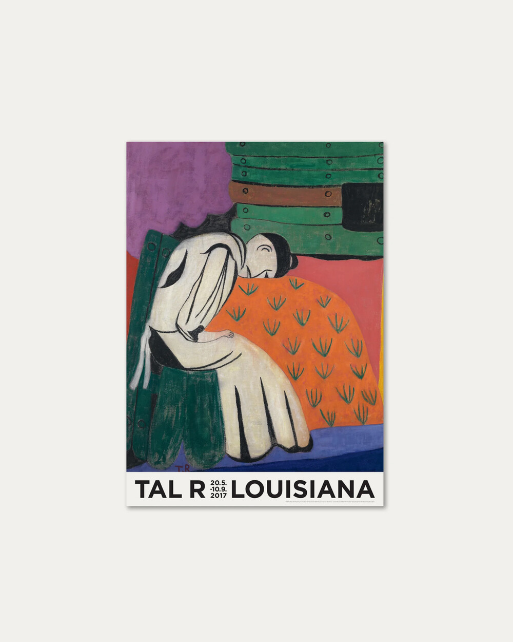 Tal R(b. 1967) 의 작품 The bend (2016) 가 있는 루이지애나 전시 포스터입니다. Tal R은 90년대 이후 세대에서 가장 중요한 덴마크 예술가 중 한 사람이었으며 오늘날 루이지애나 컬렉션에서 다양하게 소개되고 있습니다.
