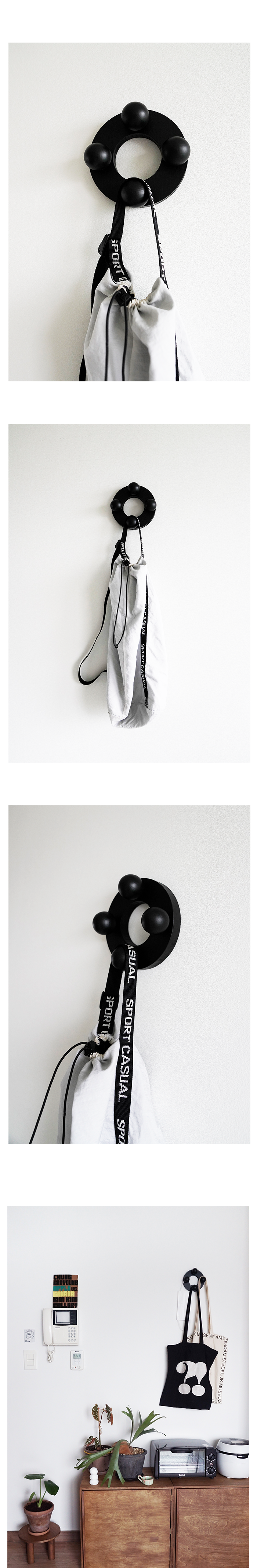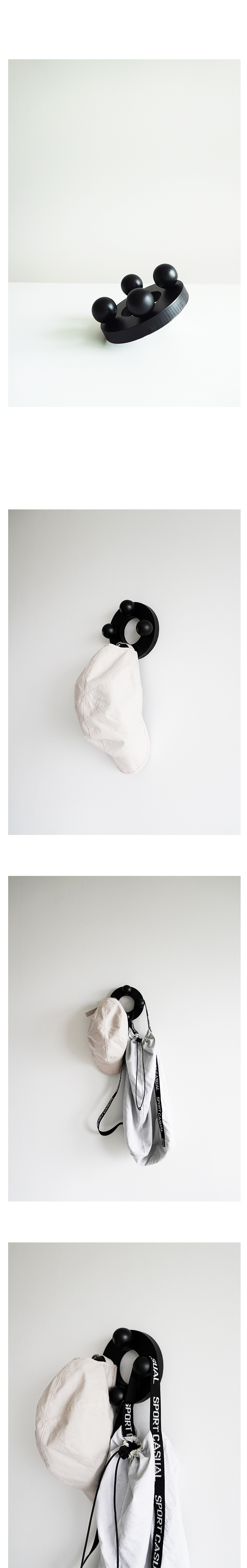 리듬감있는 4개의 나무공이 브라운컬러와 어우러져 모던하고 미니멀한 무드로 연출되는 행거입니다.