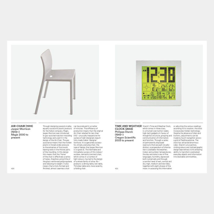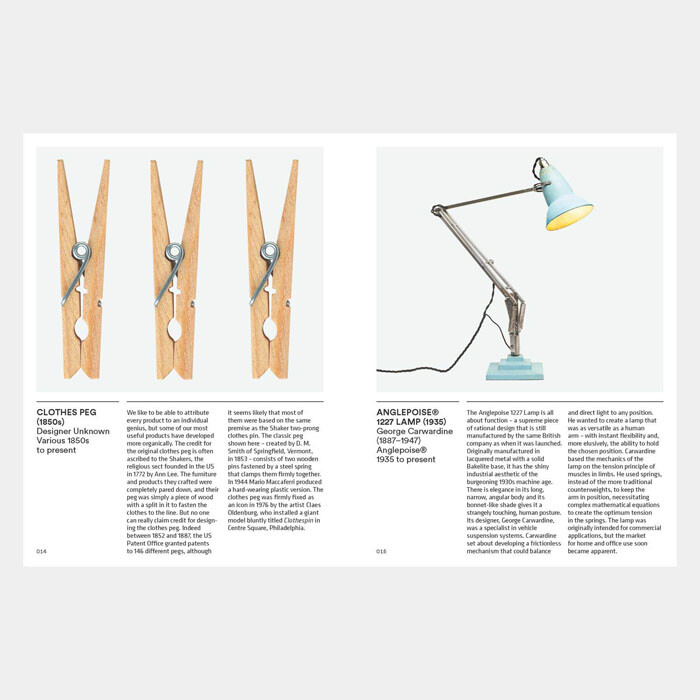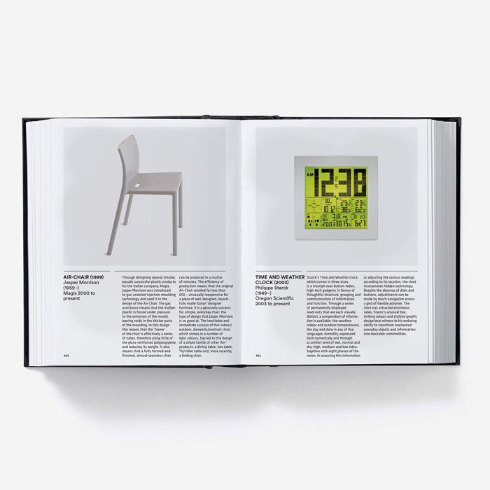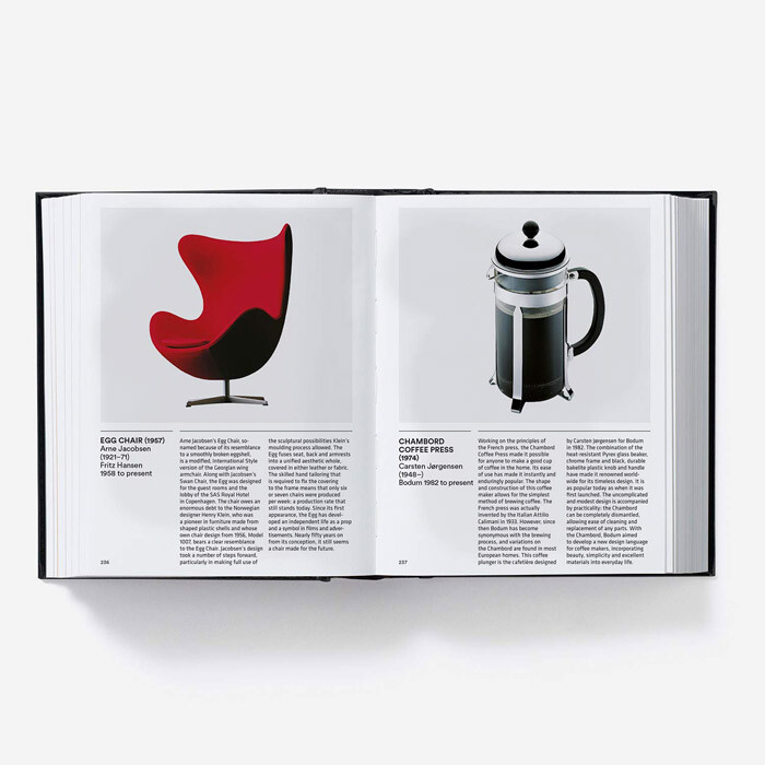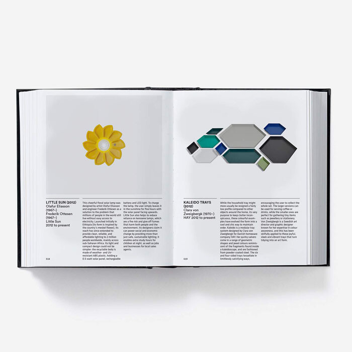 이번 개정 및 확장된 소형 에디션에서 지난 5세기 동안 가장 혁신적이고 영향력 있고 오래 지속되는 500개 이상의 제품을 보실 수 있습니다. 오늘날 우리의 사회와 문화를 형성하면서 우리의 기능을 향상시킨 사물을 통해 특별한 여행을 해세요. 디자인북은 종이 클립, 허리케인 랜턴, 마티니 유리 잔등과 같은 고전적인 물건들과 함께 르 꼬르뷔지에, 필립 스타크, 에임즈, 애플의 상징적인 작품들을 선보입니다. 각 항목은 제품, 디자이너, 제조업체 및 기록에 대한 정보를 제공하는 설명 캡션과 함께 이미지를 보여줍니다.