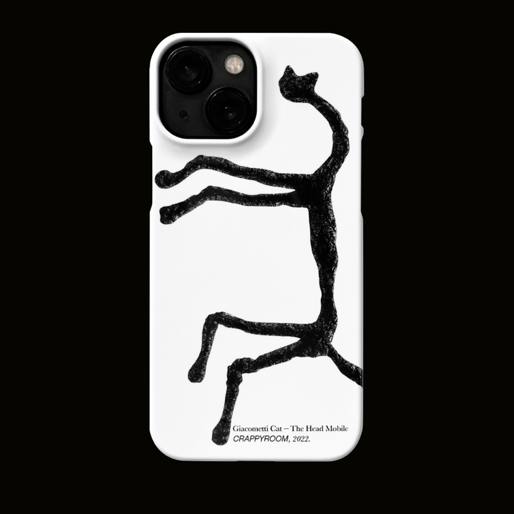 헤드모빌의 챰 중 하나인 쟈코메티 캣이 프린팅된 하드 케이스. 자코메티 캣은 조각가 '알베르토 자코메티'의 작품 'The Cat'에서 영감을 받아 제작되었습니다.