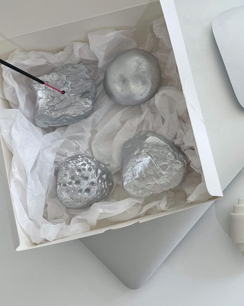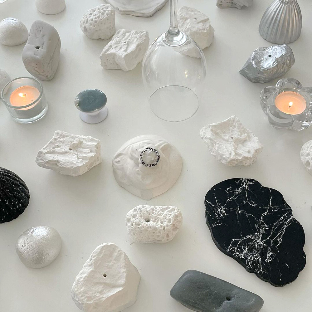 미니멀한 감성을 담아 돌멩이를 표현한 오브제입니다. 인센스홀더 또는 인테리어 소품으로 사용하실 수 있습니다.