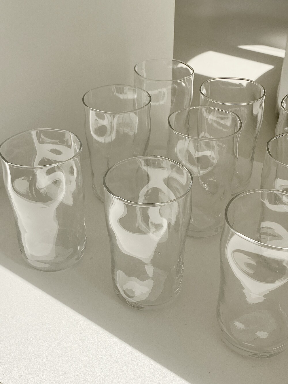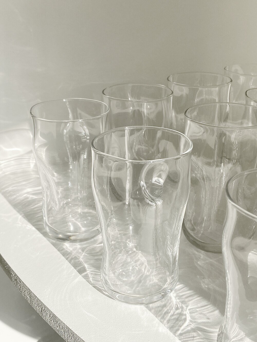 텍스처 시리즈의 베이직 텀블러는 한손에 잡히는 사이즈로 물이 흐르는듯한 부드러운 촉감과 비대칭 형태가 완벽한 그립감을 만들어줍니다. 두 가지 사이즈로 워터글라스나 비어글라스로 활용하기 좋습니다.
