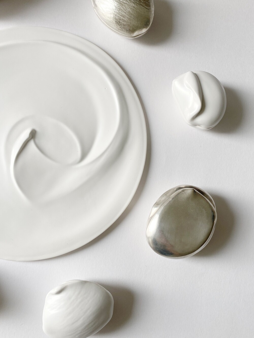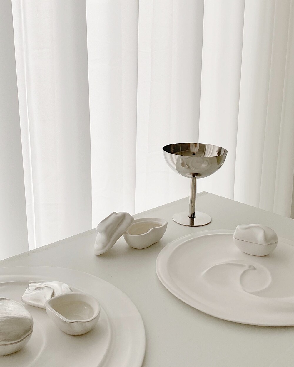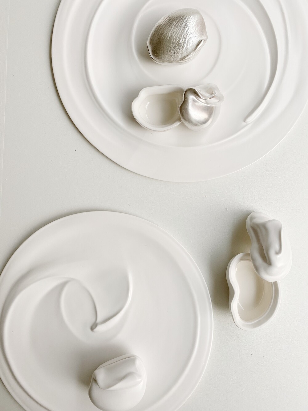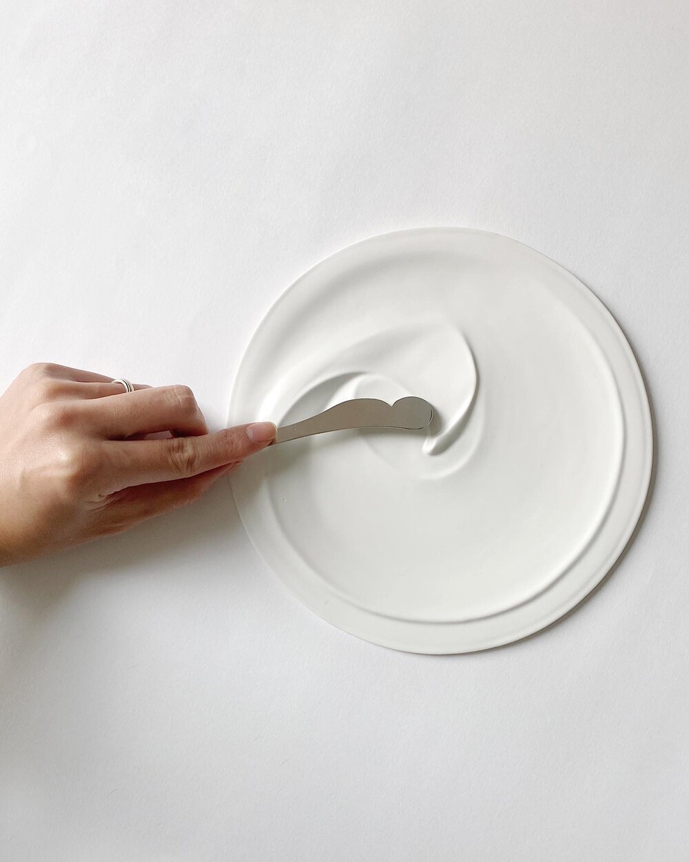 whippy cream plate는 크림이라는 텍스처가 그려내는 곡선의 리듬감과 부드러움을 모티브로 그려낸 플레이트입니다. 형태의 지속성을 가지지 못하는 소재를 단단하고 반영구적인 도자로 표현함으로써 시각적 재미를 오래 누릴 수 있게 됩니다. 부드러운 움직임을 담은 플레이트가 생동감 있는 플레이팅을 완성해드립니다.