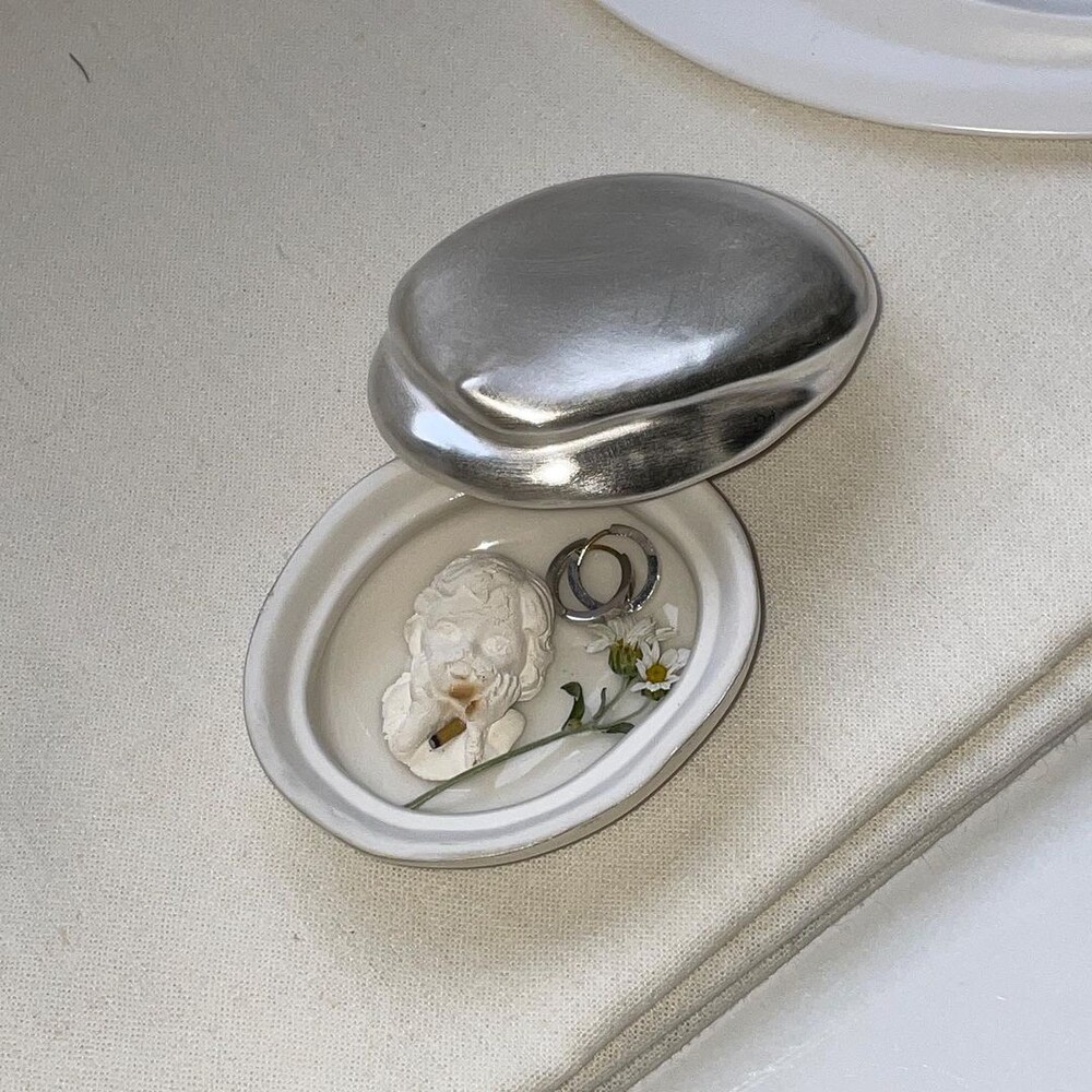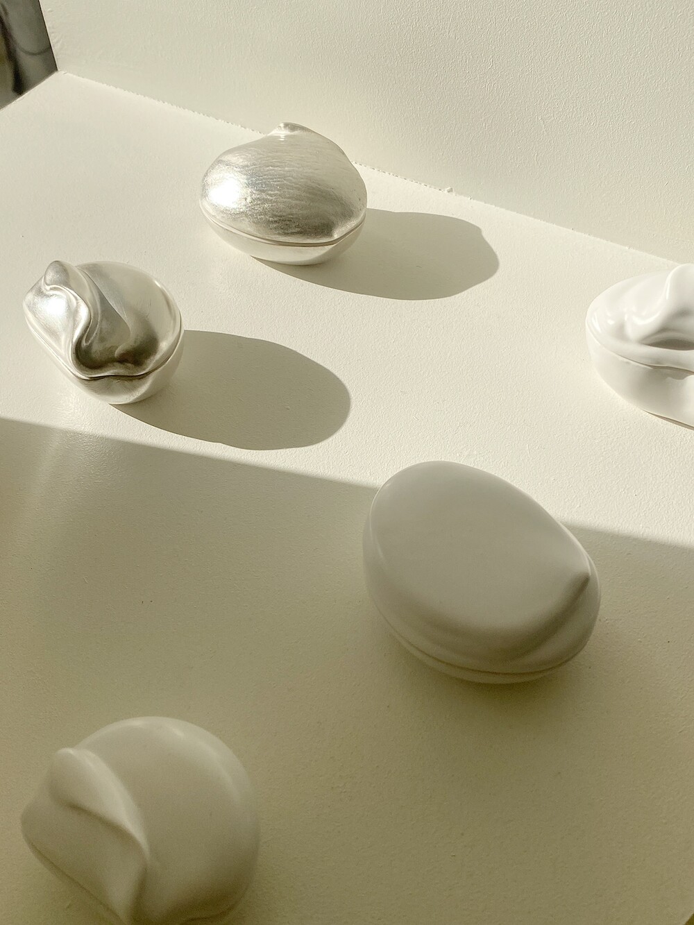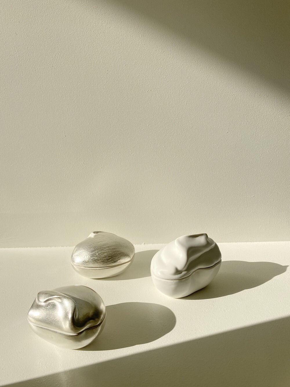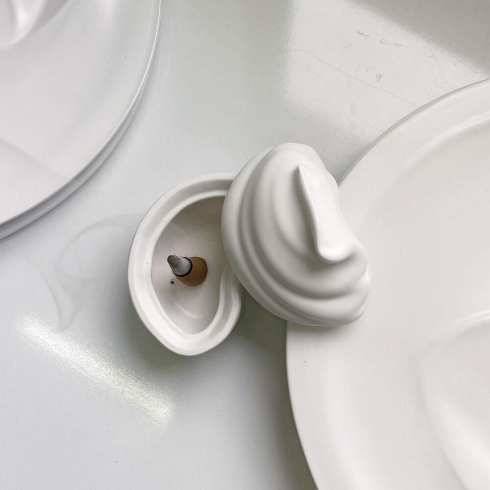크림의 부드러운 텍스처를 단단하고 반영구적인 소재인 도자로 표현해 낸 도자함입니다. 단독 오브제로도 사용이 가능하며 작은 악세서리 보관함, 인센스콘 케이스&트레이, 문진등으로 사용자에 의해 다양한 쓰임이 가능합니다.