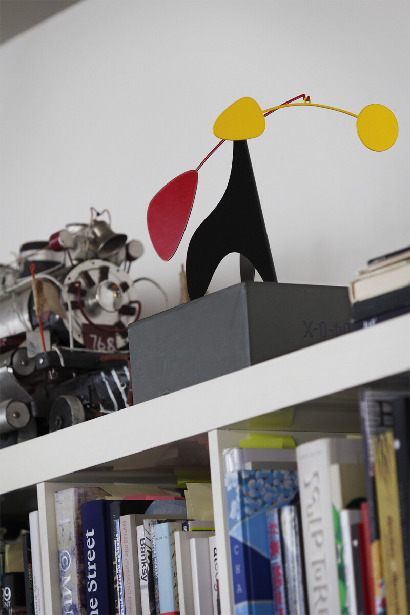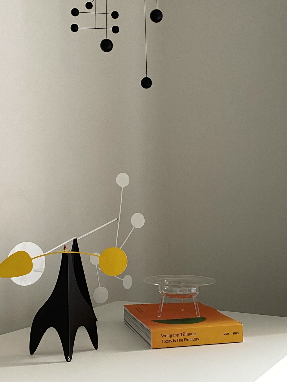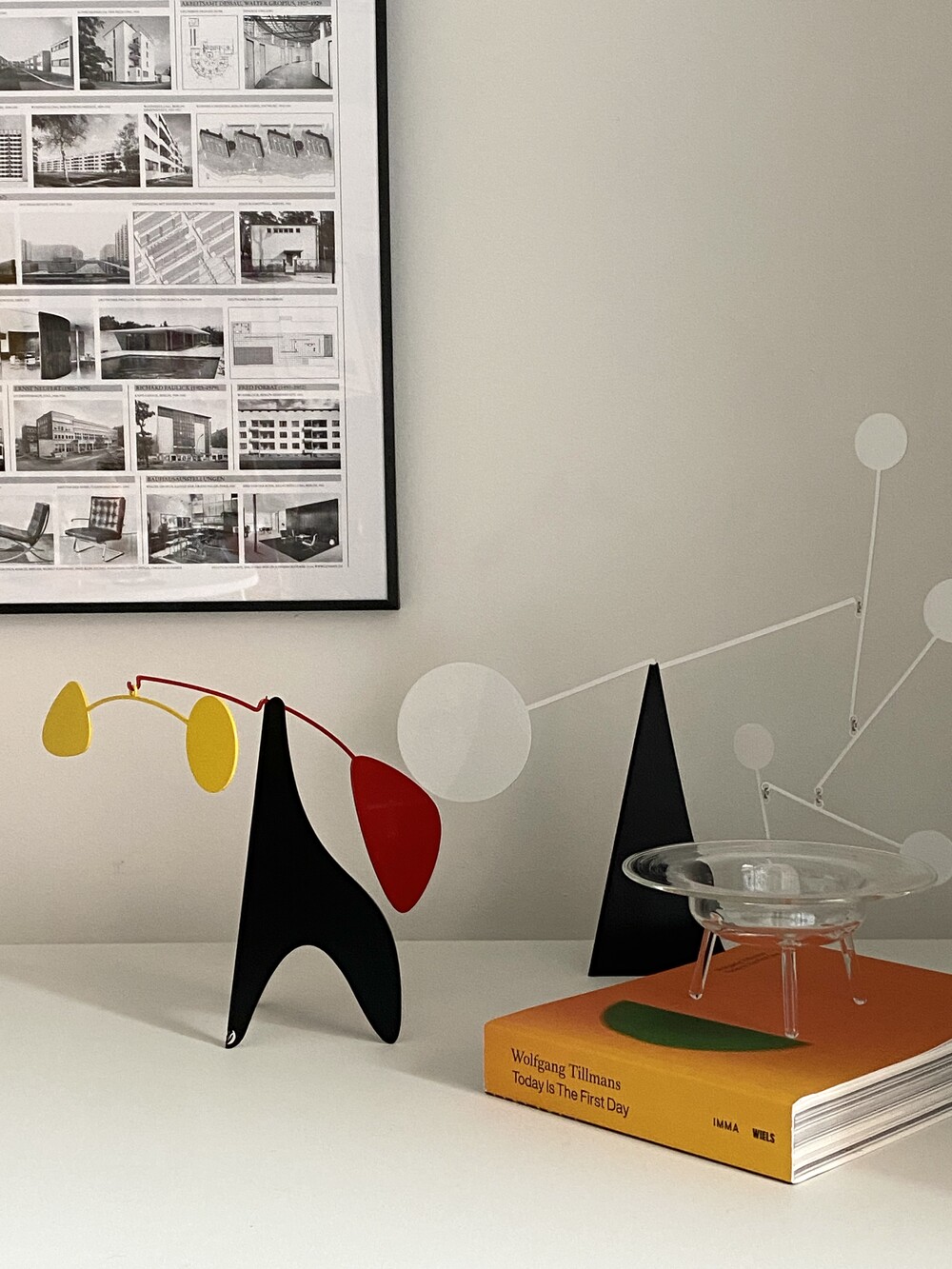 전 세계적으로 가장 잘 알려진 에코 모빌의 히트작품으로, 키네틱 아트의 창시자 알렉산더 칼더의 디자인을 데스크 사이즈로 만든 베스트 셀러 모빌입니다. 블랙 베이스 컬러에 연결되는 컨트라스트 컬러는 화려함 속에 감춰진 맑은 색채감을 빛냅니다. 테이블 위 어느 장소에서나 우아한 색상 표현과 부드러운 움직임으로 시선을 사로잡는 미술작품입니다.