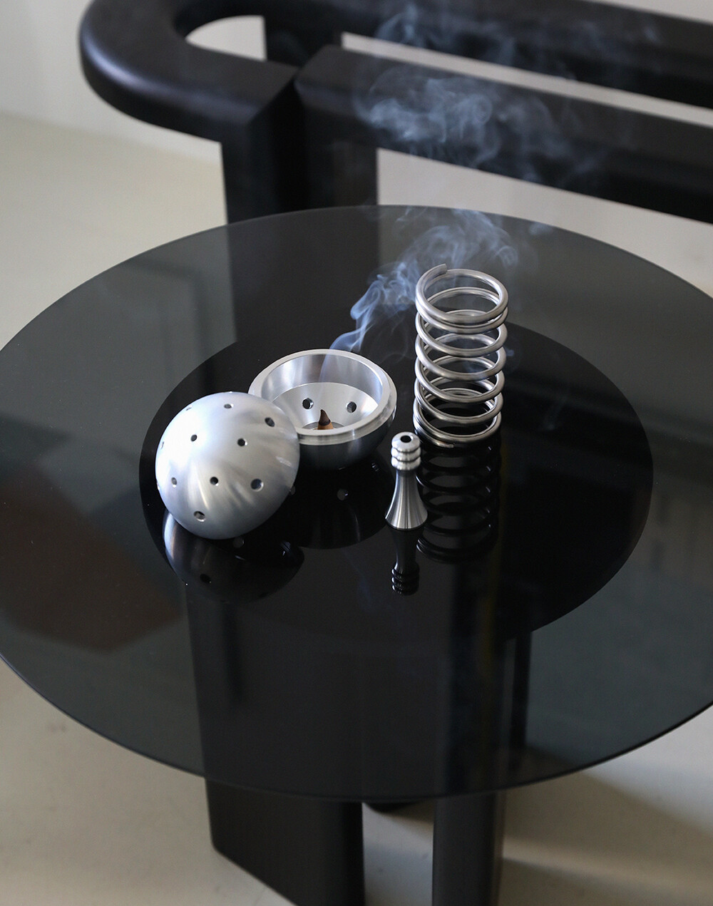 향을 넘어서 연기를 디자인한 FE26의 인센스 버너 입니다. 나오는 연기의 흐름과 향이 인센스의 근본이라 생각해 바람이 불지 않는 곳에서는 영엄하게 연기가 흘러나오게, 바람이 불 경우 연기의 흐름이 활활 타오르게 디자인 하였습니다. 바람이 불어도 인센스의 타고 남은 재가 흐트러 지지 않습니다. 인센스 스틱 및 콘 모두 사용 가능합니다.