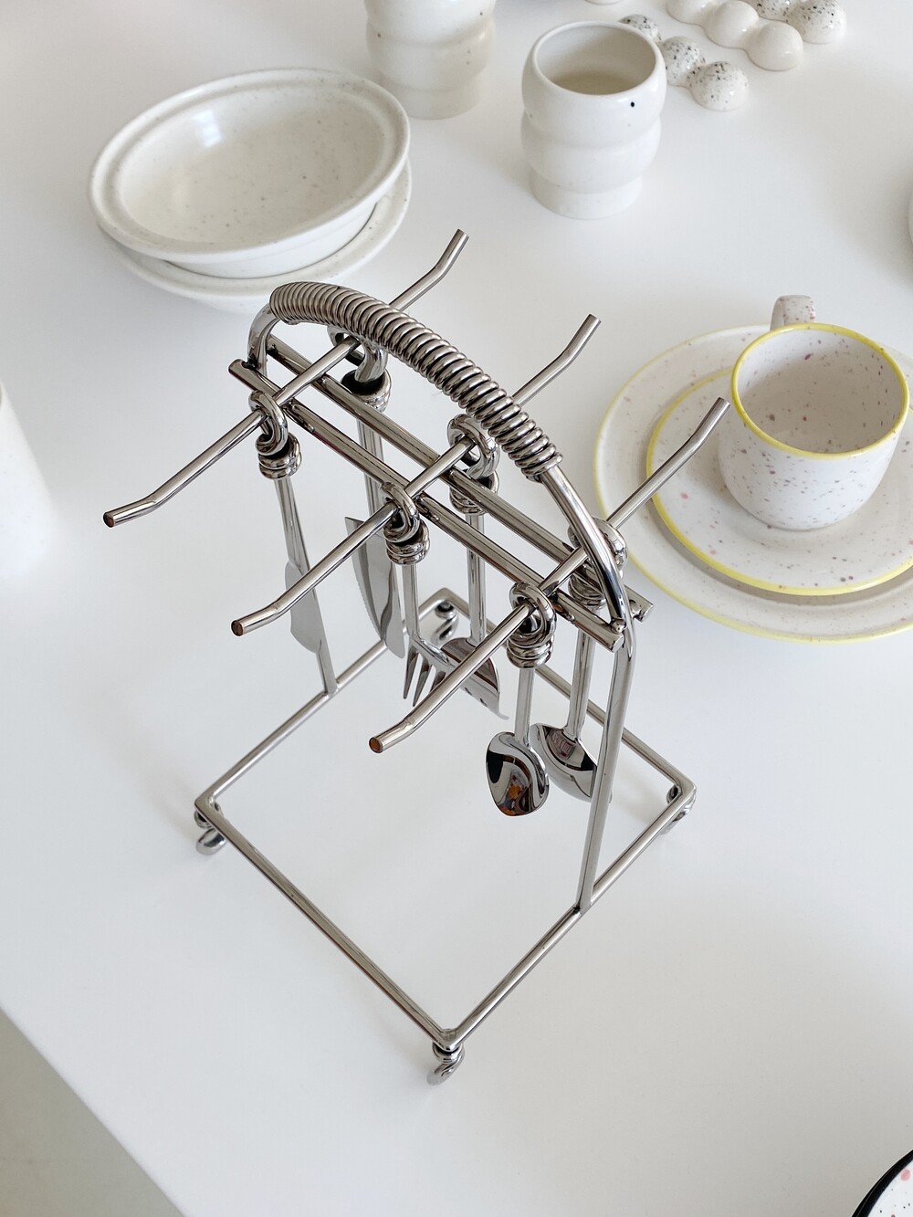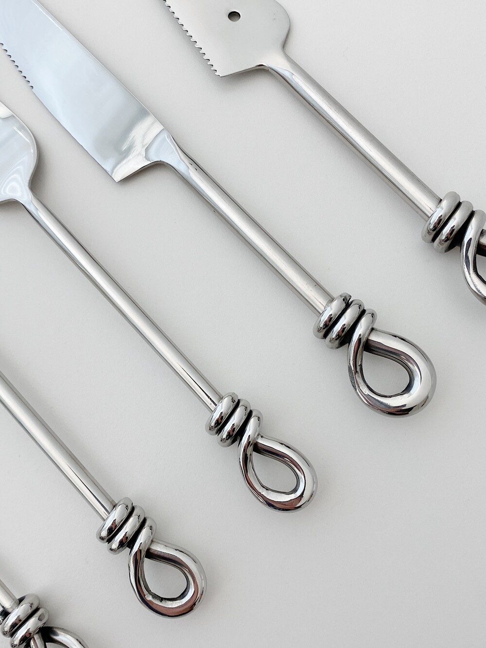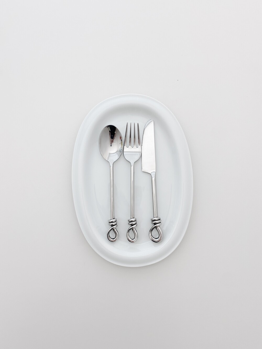 매듭 디자인의 스테인레스 커트러리 시리즈입니다. 태국 현지 장인의 손길을 통해 모두 수작업으로 제작됩니다. 묵직하면서 그립감이 좋아 편하고 즐거운 식사시간을 즐길 수 있습니다. 행잉 스탠드와 함께 테이블 세팅을 하면 풍성하고 완성도 있는 테이블을 만들어줍니다.