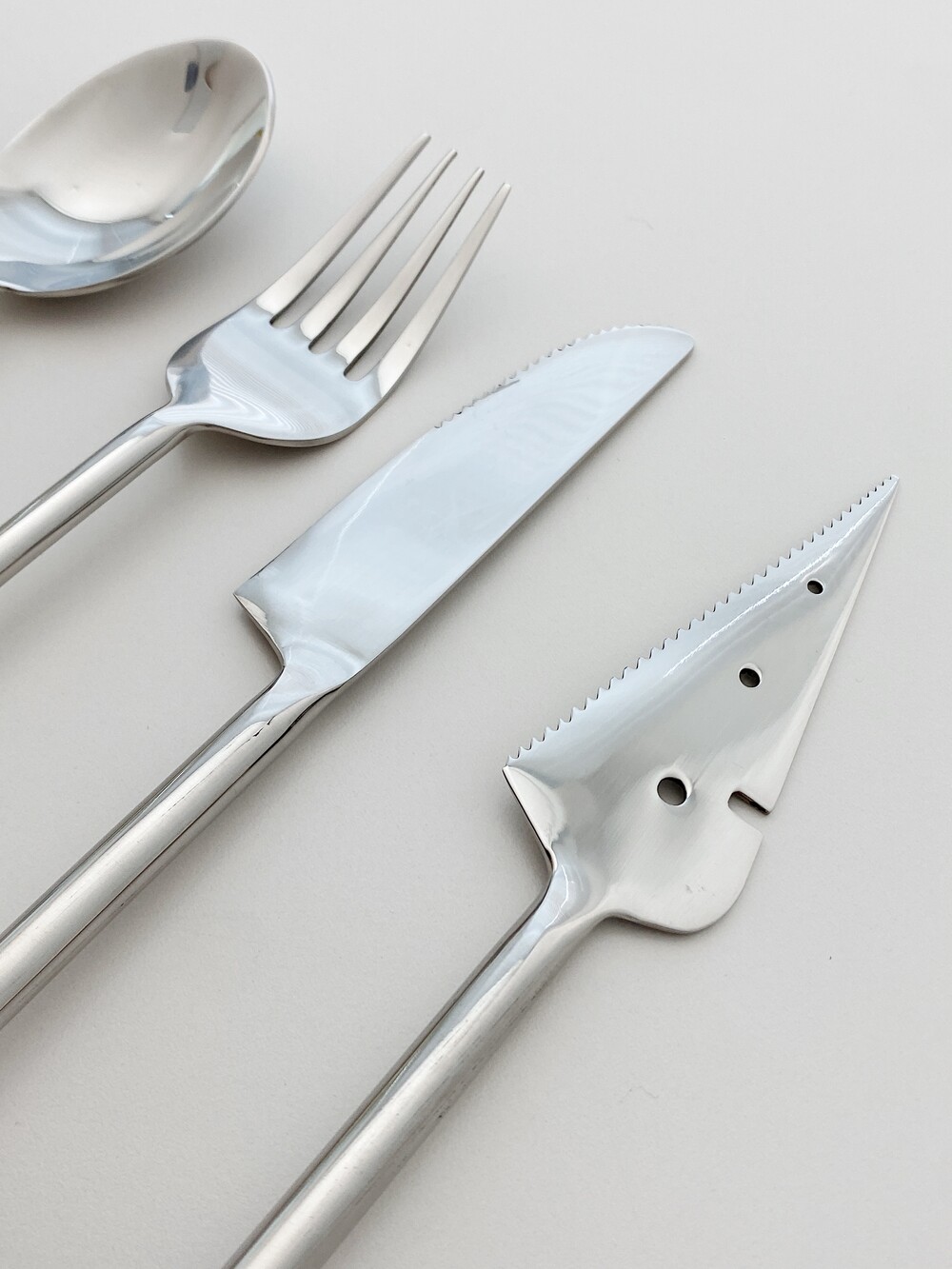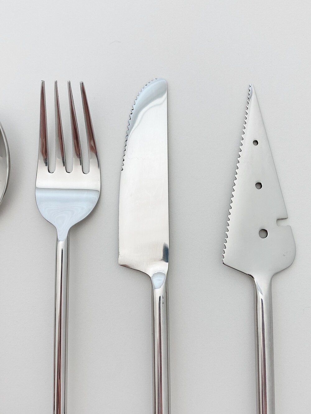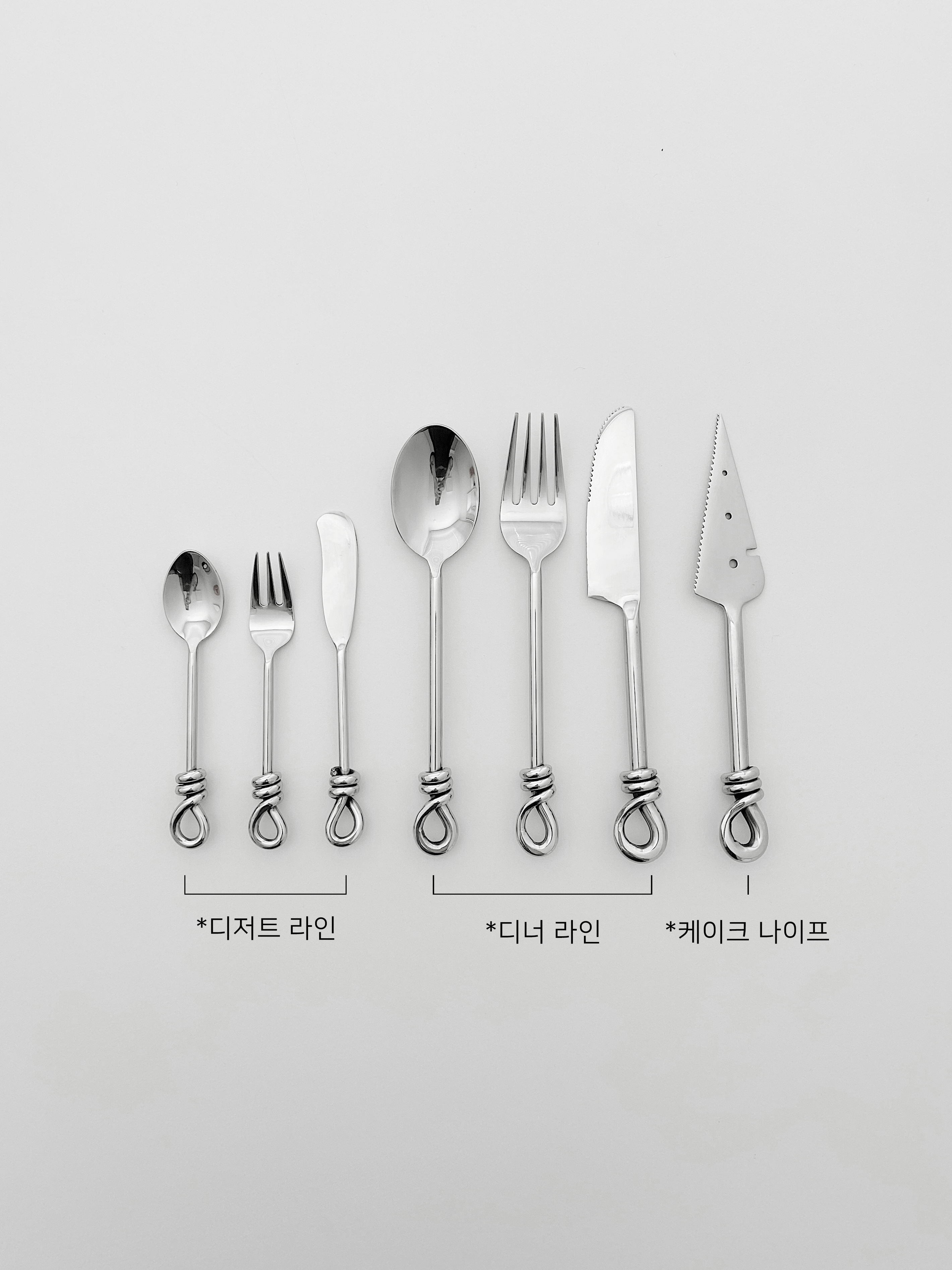 - Size : 디저트스푼 13.2cm, 디저트포크 13.3cm, 버터나이프 15cm, 디너스푼 19cm, 디너포크 19.7cm, 디너나이프 20.6cm, 케이크 나이프 20cm