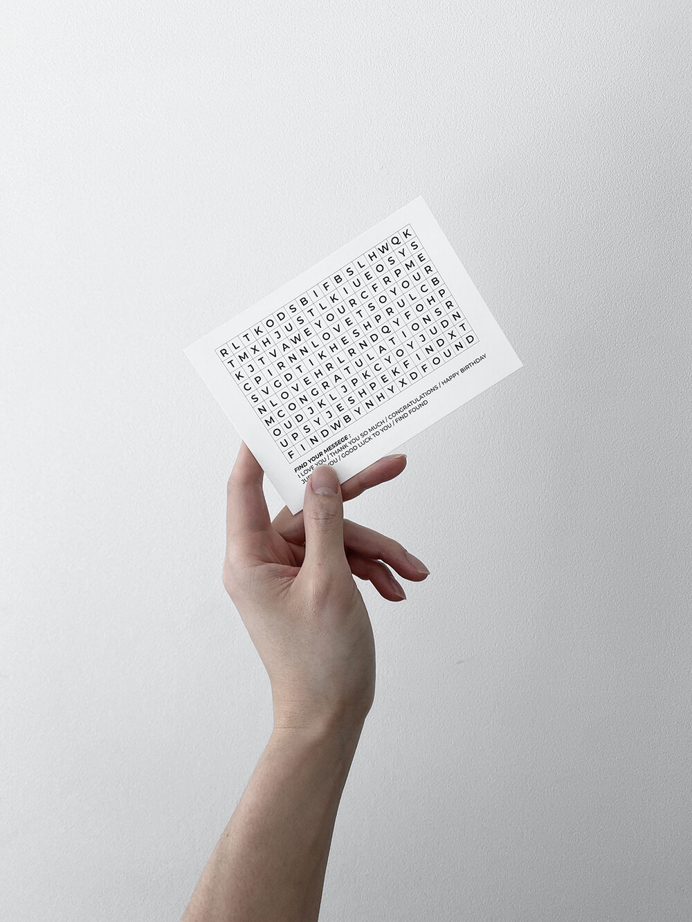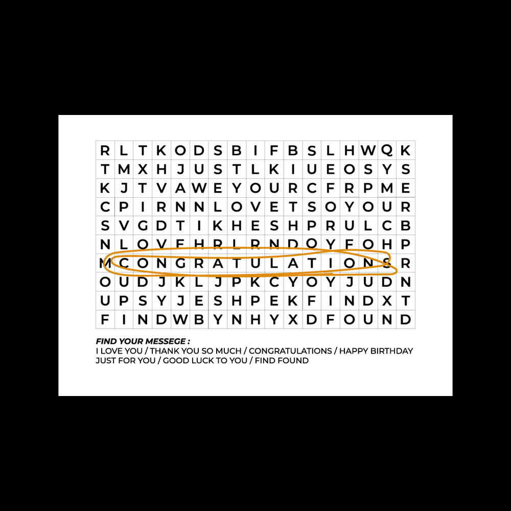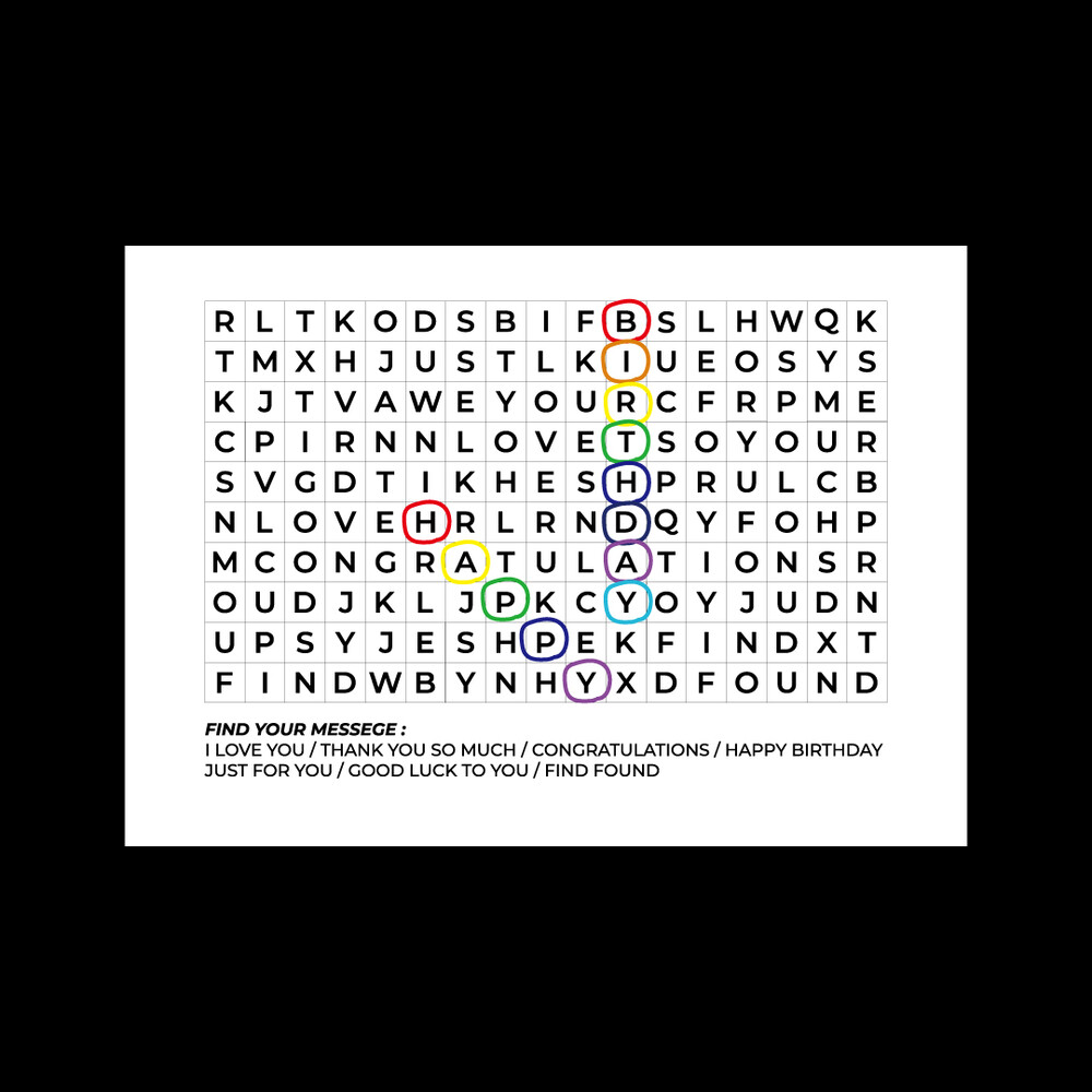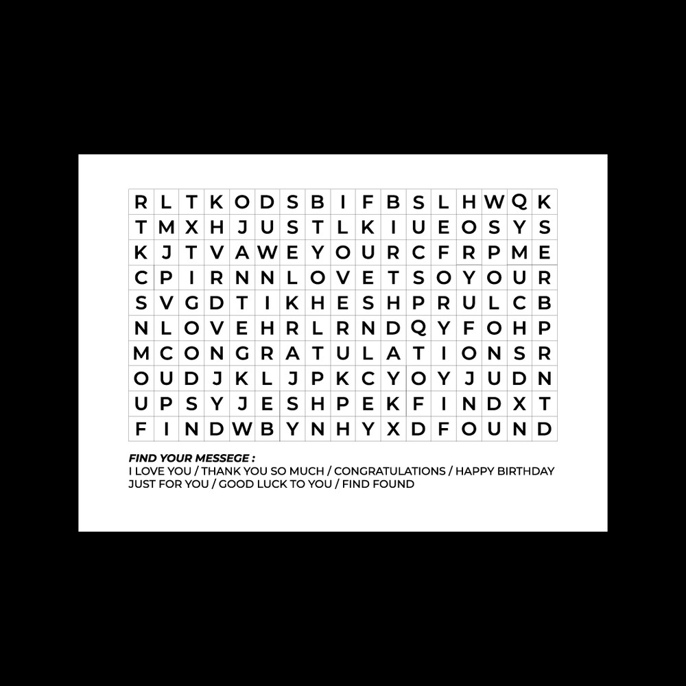 찾아가는 재미가 있는 파인드 파운드 퍼즐 메세지 카드입니다. 보기의 메세지를 퍼즐에서 찾아 마음을 전해보세요!