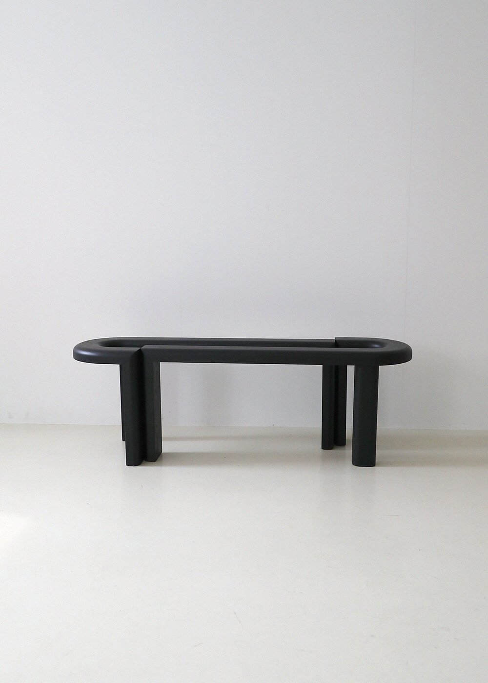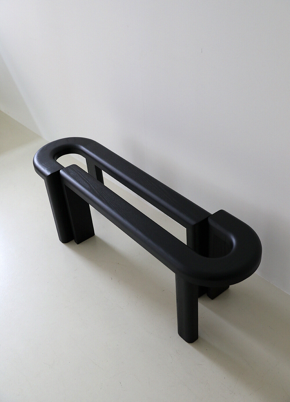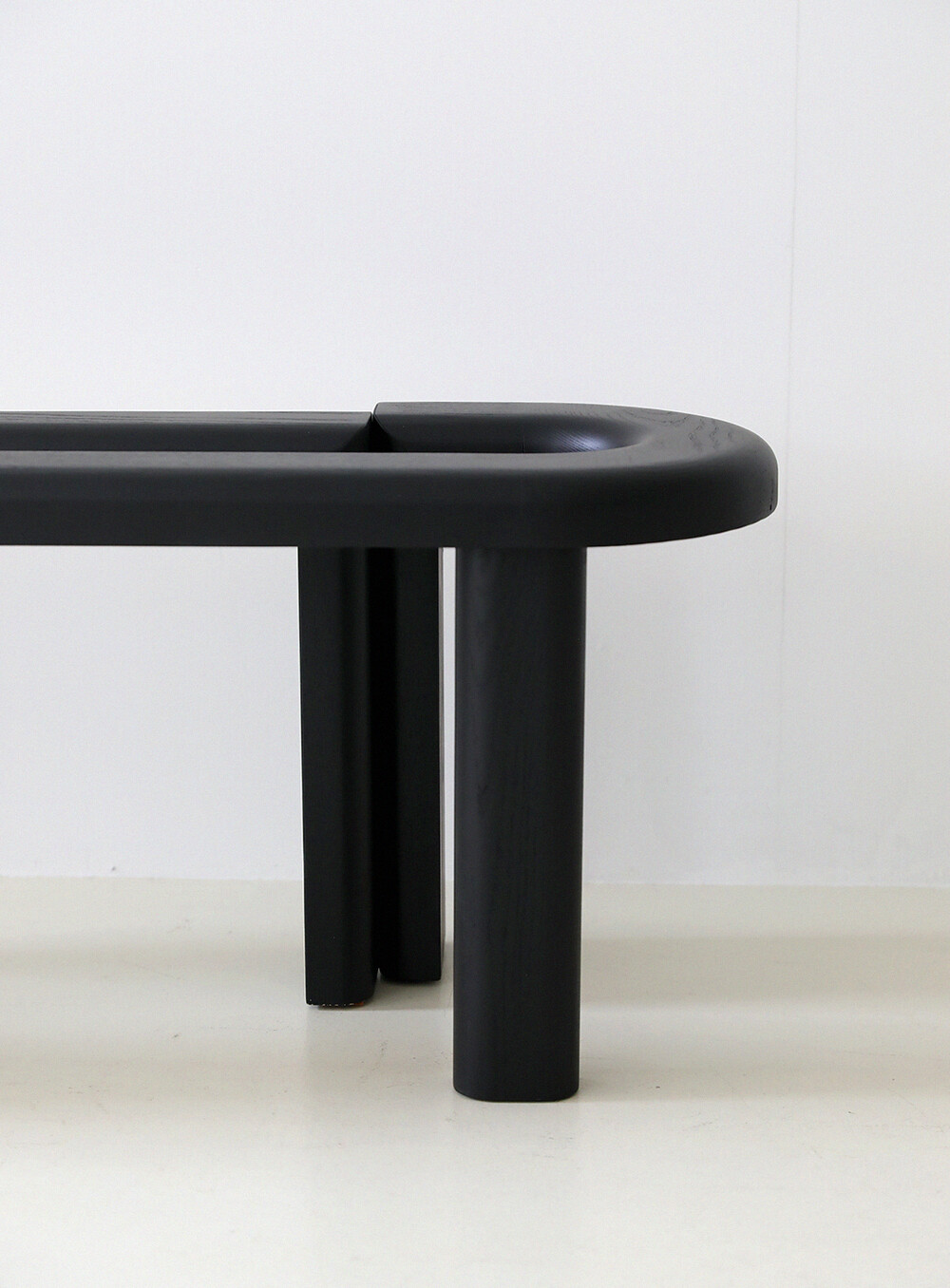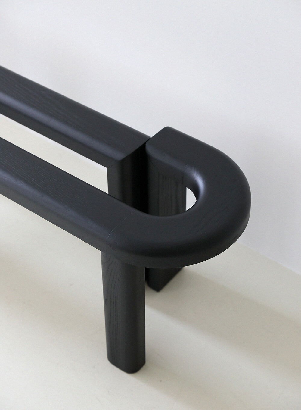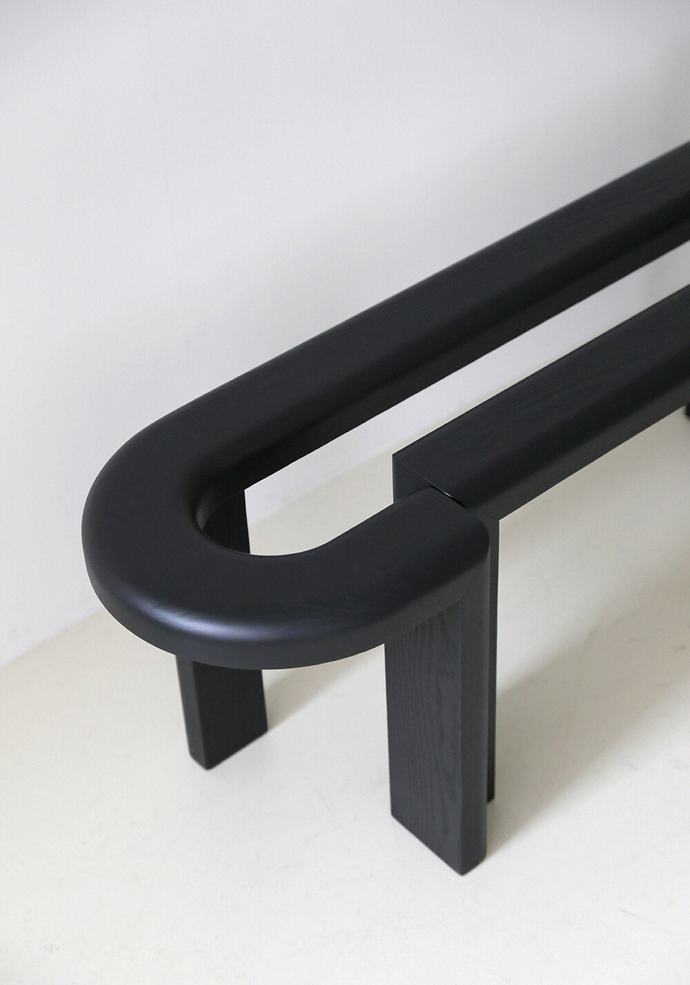 두 개의 긴 아치 형태가 어긋난 채로 맞물리면서 하나의 벤치가 됩니다. 모듈식으로 배치를 다르게 하거나 사이즈, 색상 변경 등 비스포크가 가능합니다.