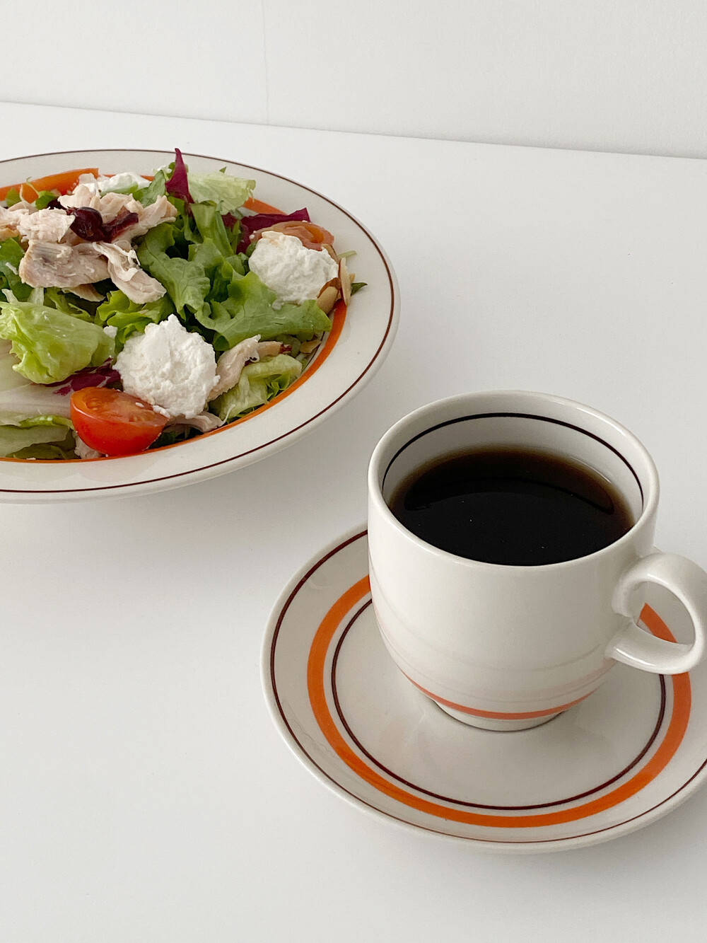 1923년 시작해 지금까지 많은 사랑받고 있는 카네수즈의 테이블웨어 시리즈입니다. 따뜻한 웜톤 베이스에 포인트 컬러가 돋보이는 제품입니다. 약 265cc 용량으로 커피나 라떼, 차등 다양한음료를 즐기기 좋은 사이즈 입니다. 소서는 하나의 플레이트로도 충분한 역할을 하기에 디저트 접시로도 활용하기 좋습니다.