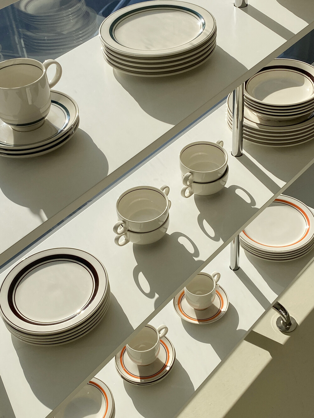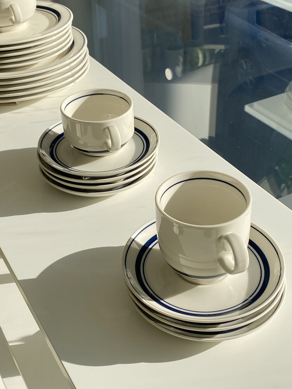 1923년 시작해 지금까지 많은 사랑받고 있는 카네수즈의 테이블웨어 시리즈입니다. 따뜻한 웜톤 베이스에 포인트 컬러가 돋보이는 제품이며 도킹(적층)이 가능하도록 제작된 카네수즈의 뉴 라인입니다. 덕분에 보관이 용이합니다.210cc 용량으로 높이가 낮아 가벼운 커피 한 잔 또는 티타임을 즐기기 좋은 사이즈입니다. 소서는 하나의 플레이트로도 충분한 역할을 하기에 디저트 접시로도 활용하기 좋습니다.
