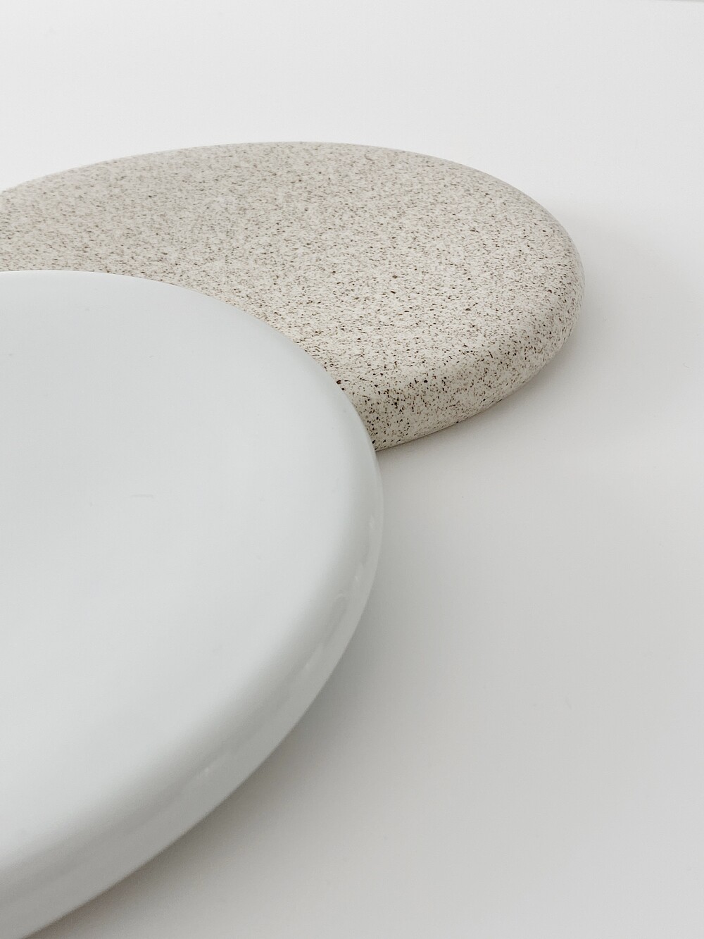 심플하면서도 고급스러운 디자인의 카네수즈의 플레이트를 소개합니다. 조약돌을 닮은 접시로 컬러는 스톤, 화이트 2종입니다.가운데를 살짝 오목하게 디자인하여 소스를 뿌려도 가운데로 모아질 수 있도록 제작되었습니다. 바닥면 안 쪽이 안쪽으로 들어가 있어 그릇을 옮길 때에도 보다 편리합니다. 와인바, 디저트샵, 파인다이닝의 분위기를 집에서도 연출할 수 있으며다양한 오브제 트레이로도 활용할 수 있습니다.