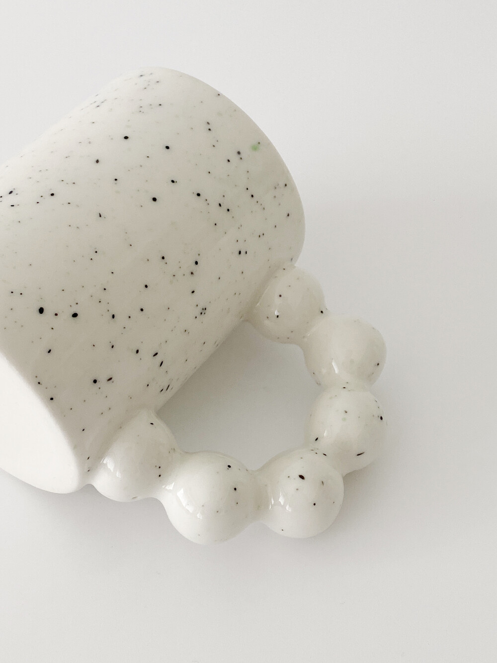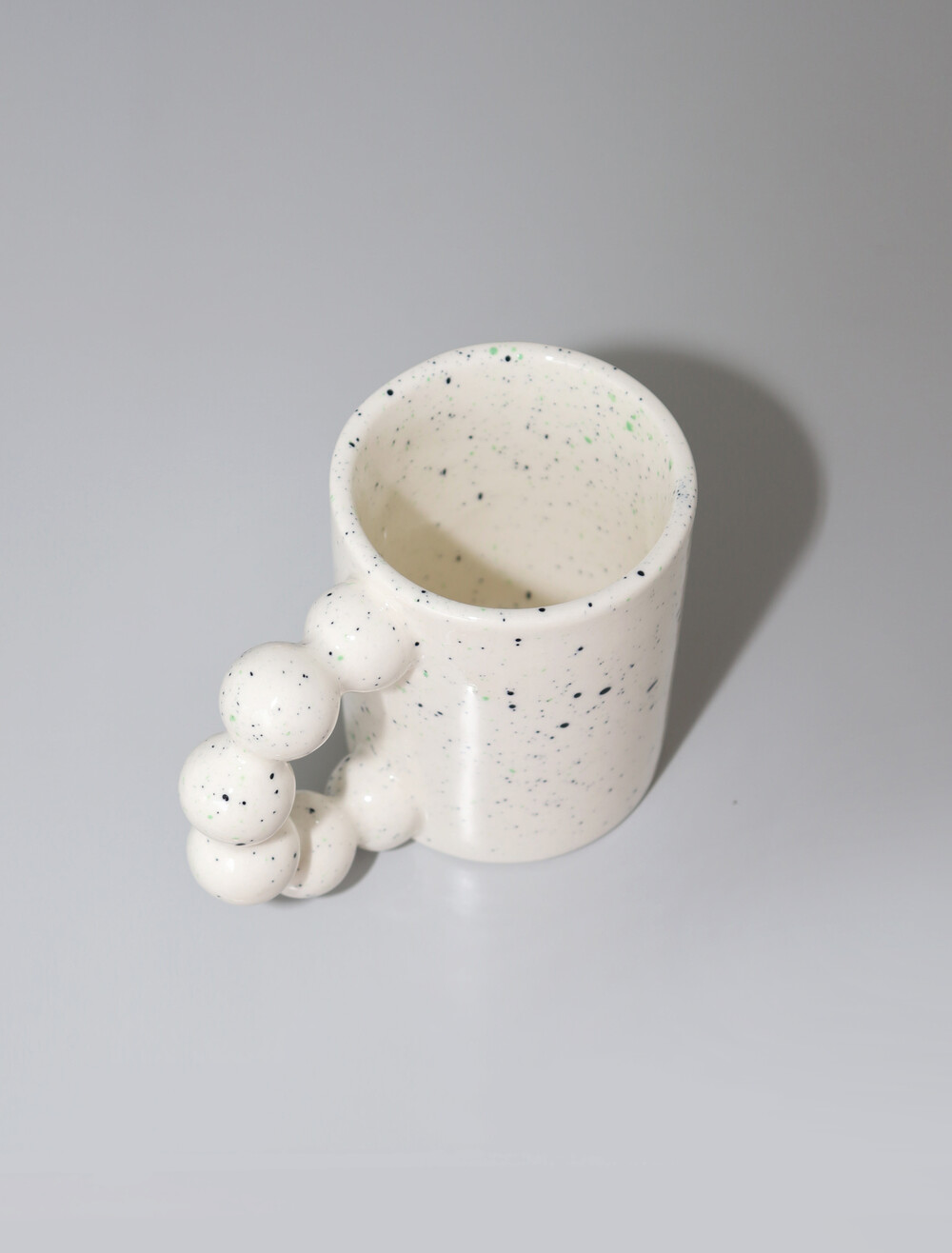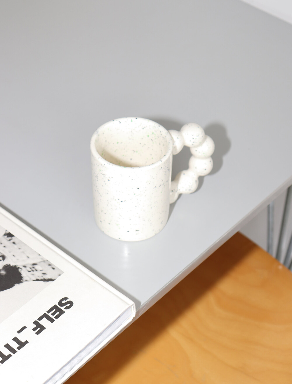 M.A.P 시그니처 라인인 비즈 아치머그 입니다. black,mint컬러가 흩뿌려져 있는 제품으로 수작업 특성상 모든 제품의 패턴이 다릅니다. 그립감이 좋은 410ml 용량으로 아이스컵 용도로 사용하시기에 적합하며 뜨거운 음료 또한 사용이 가능 합니다. (전자레인지/식기세척기 사용 가능)