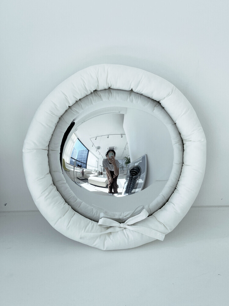 미호미두의 첫번째 오브제 가구 ‘패딩 거울’ 입니다. 면 소재를 사용했으며, 거울의 태두리에는 솜이 들어가있어 쿠션감이 있습니다. 벽면에 걸거나 벽면에 기대어 활용할 수 있습니다. 제일 좋아하는 나만의 공간의 두고, 매일 볼수있는 오브제 가구가 되길 바랍니다.