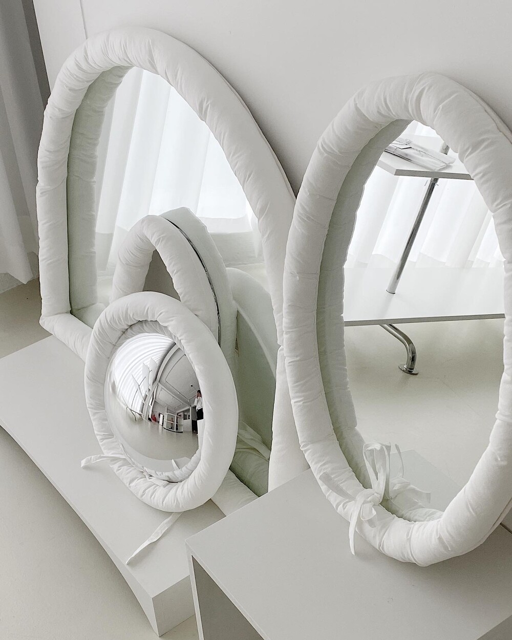 미호미두의 첫번째 오브제 가구 ‘패딩 거울’ 입니다. 면 소재를 사용했으며, 거울의 태두리에는 솜이 들어가있어 쿠션감이 있습니다. 제일 좋아하는 나만의 공간의 두고, 매일 볼수있는 오브제 가구가 되길 바랍니다.