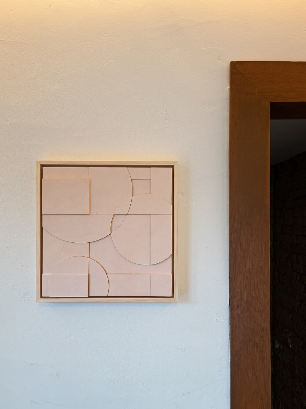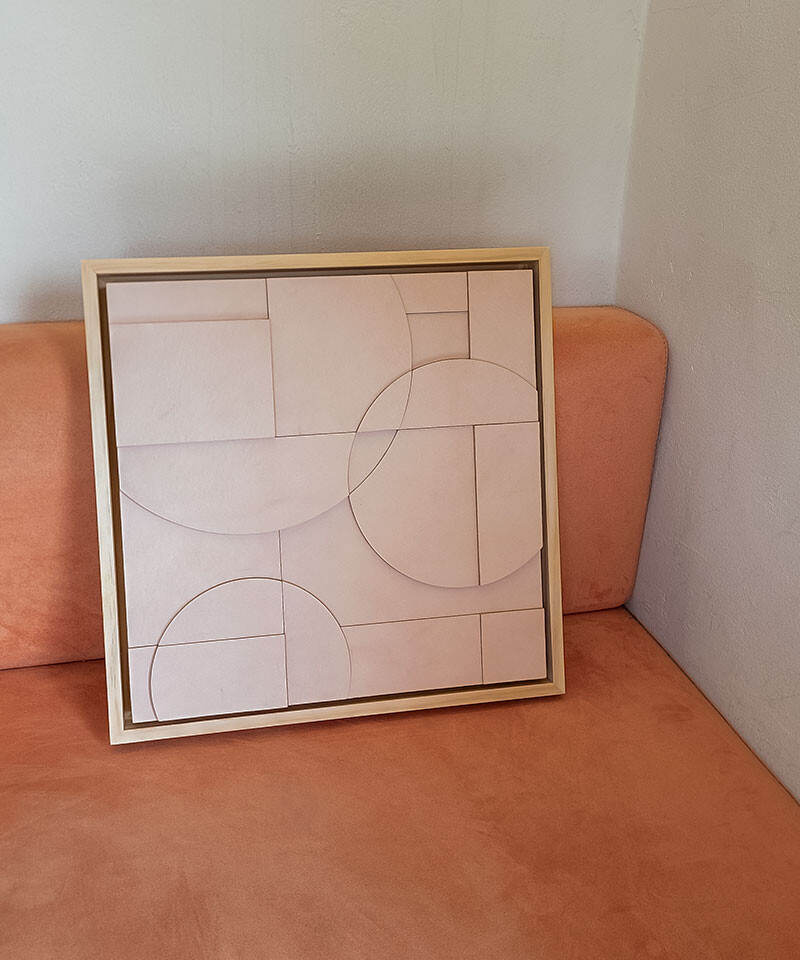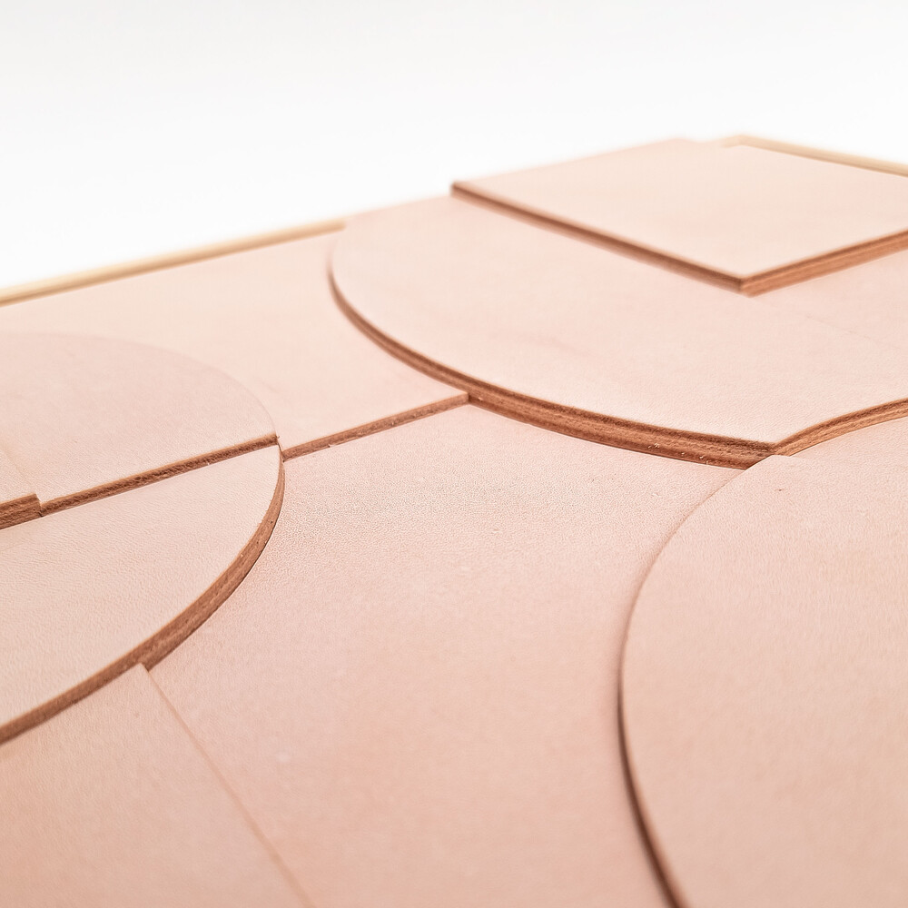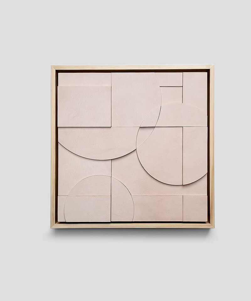 밋밋하고 평평한 그림액자가 아닌 가죽을 쌓아올려 만든 입체적인 액자입니다. 쌓아올린 가죽 면의 높이 차이로 선을 표현했습니다.가죽의 주름이나 자연스러운 컬러, 질감을 최대한 살려 만들었습니다. 가죽의 높이 차이 덕에 시시각각 달라지는 광원의 세기, 방향에 따라 전시된 공간만의 고유한 연출이 가능합니다.