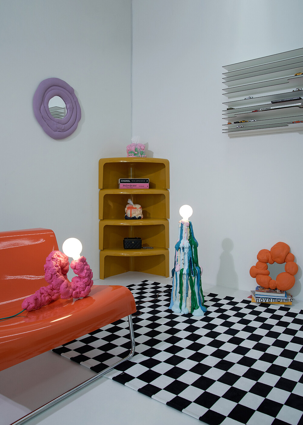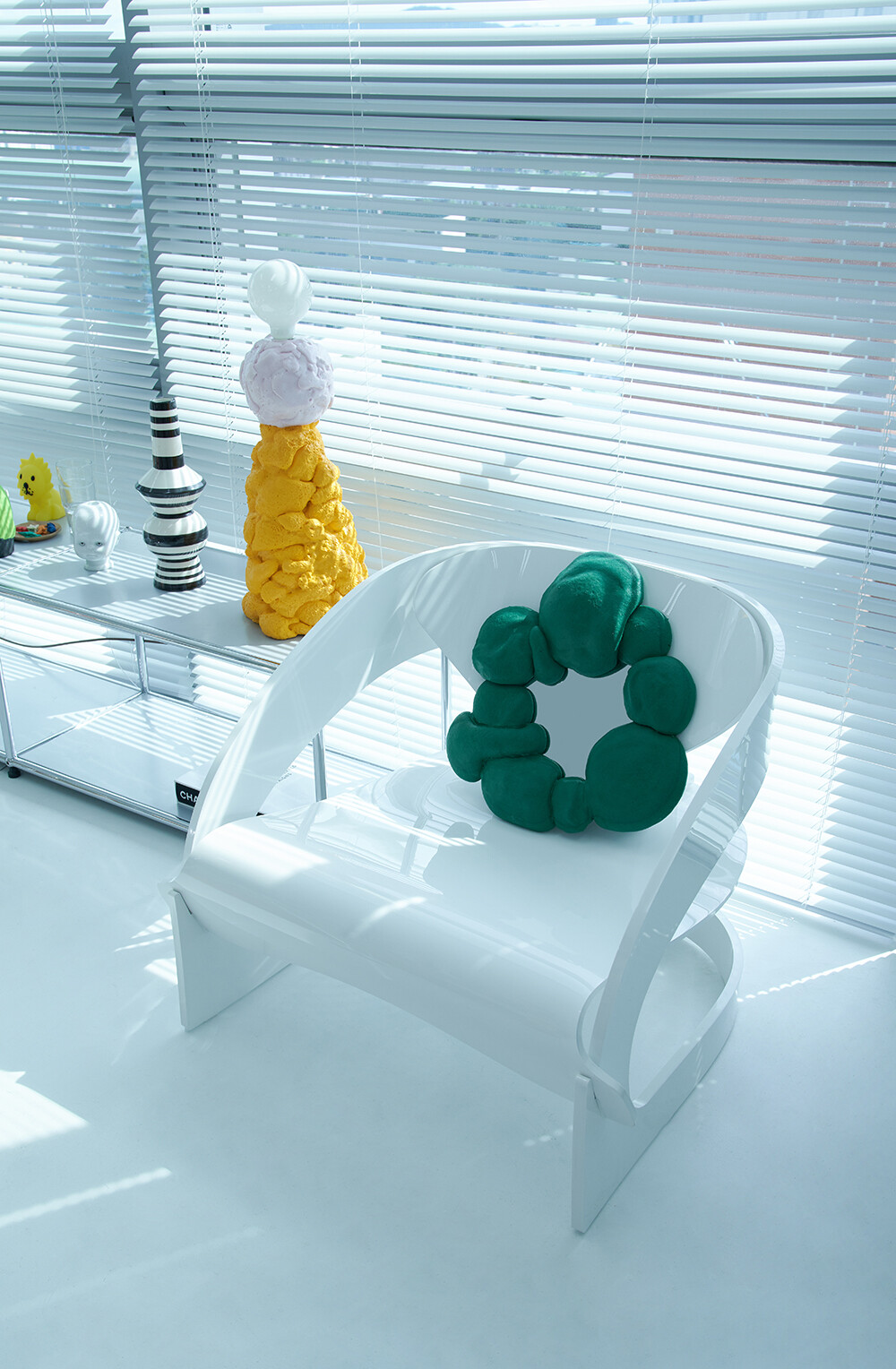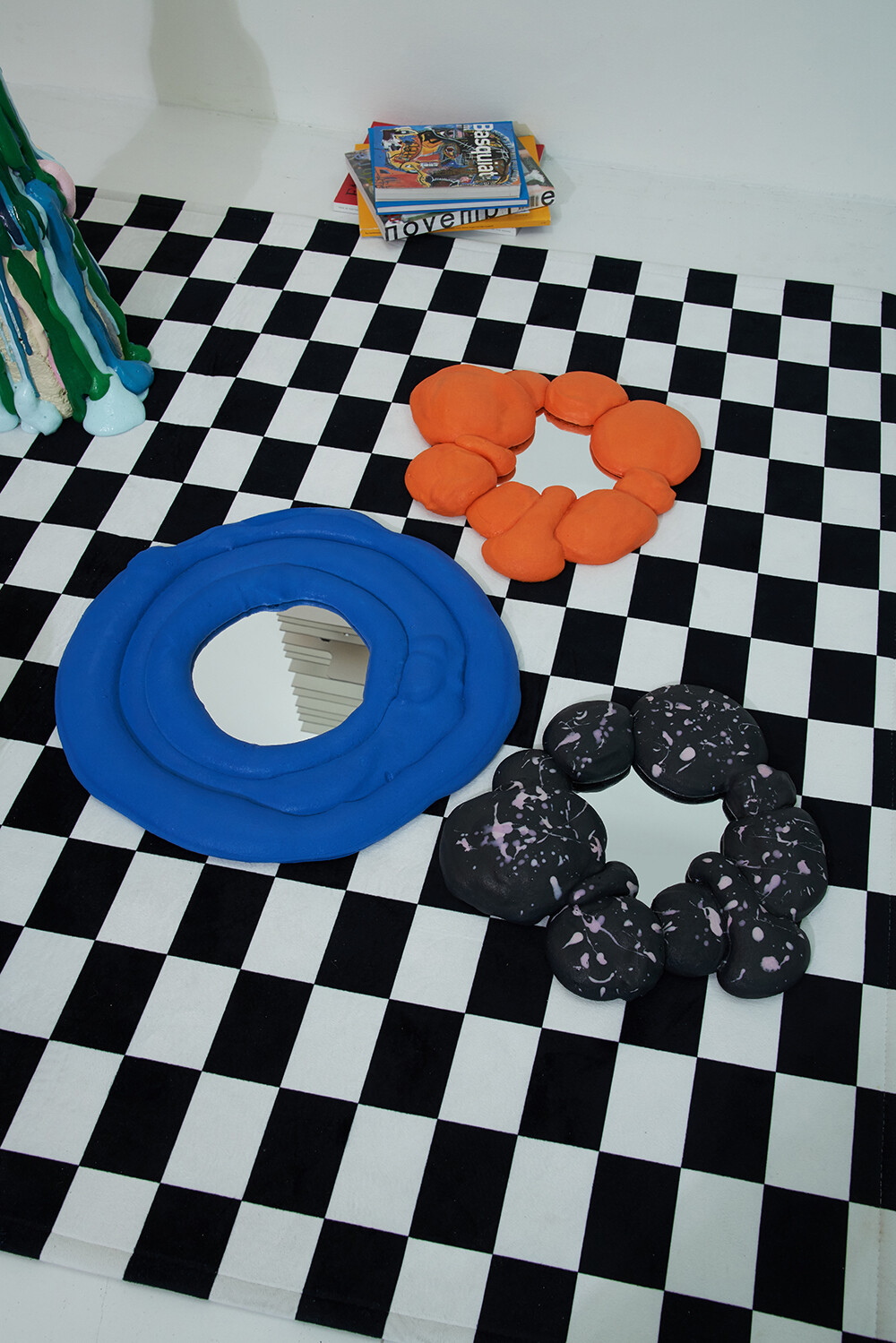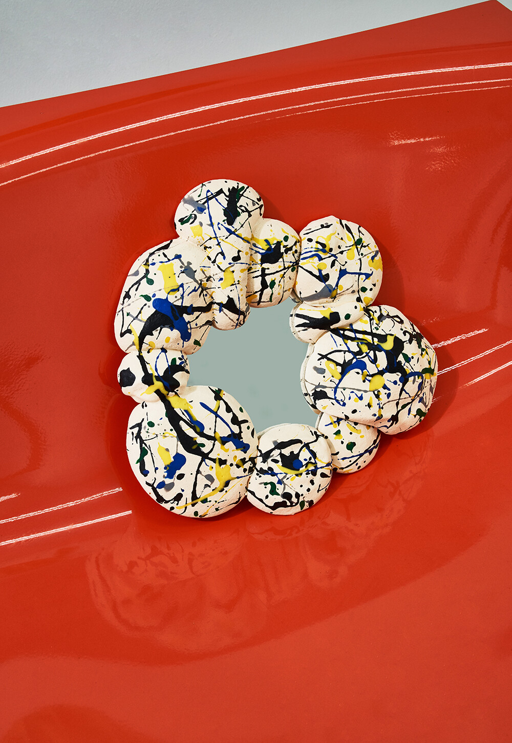 페블 미러는 잔잔한 강가 옆 조약돌을 연상시킵니다. 거울의 컬러풀한 색상들은 잔잔하던 강물에 던져진 조약돌처럼 다소 밋밋했던 공간에 생동감을 일으키게 합니다. 단순하게 용모를 가꾸는 거울의 기능을 넘어 자칫 단조로울 수 있는 공간에 포인트를 주는 오브제를 만끽해 보세요.
