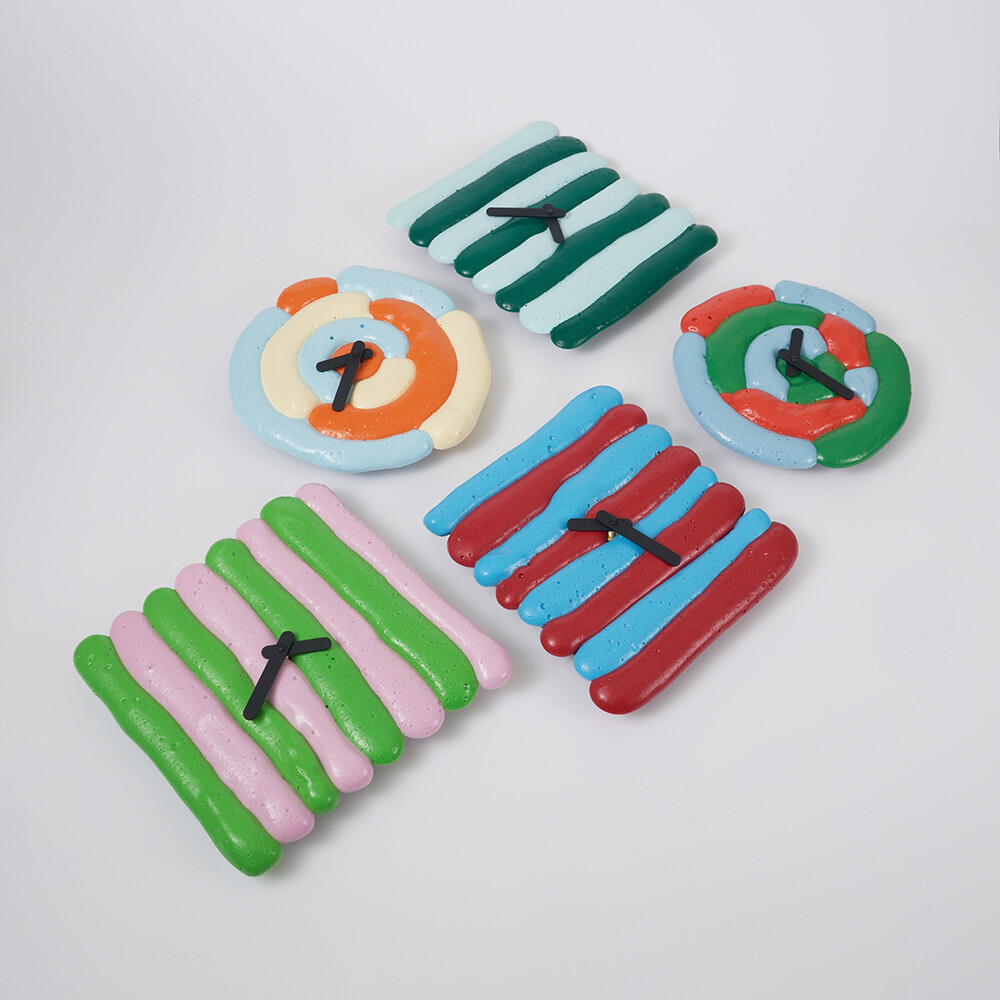 NTTH의 시계는 조각 조각의 형태가 모여 하나의 패턴을 만들고 각기 다른 컬러들로 조화를 이룹니다. 스트라이프 시계의 정형화 되지 않은 쉐입으로 공간을 풍요롭게 만들어 기분 좋은 하루를 선물합니다. 쓰임새 있는 오브제로써 요즘 시대 사용이 잦아든 벽 시계를 다시 한 번 만나보세요.