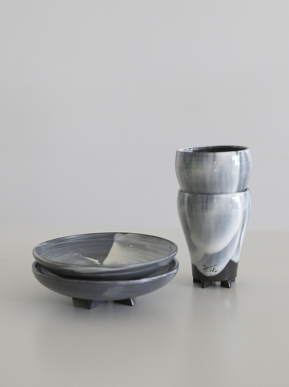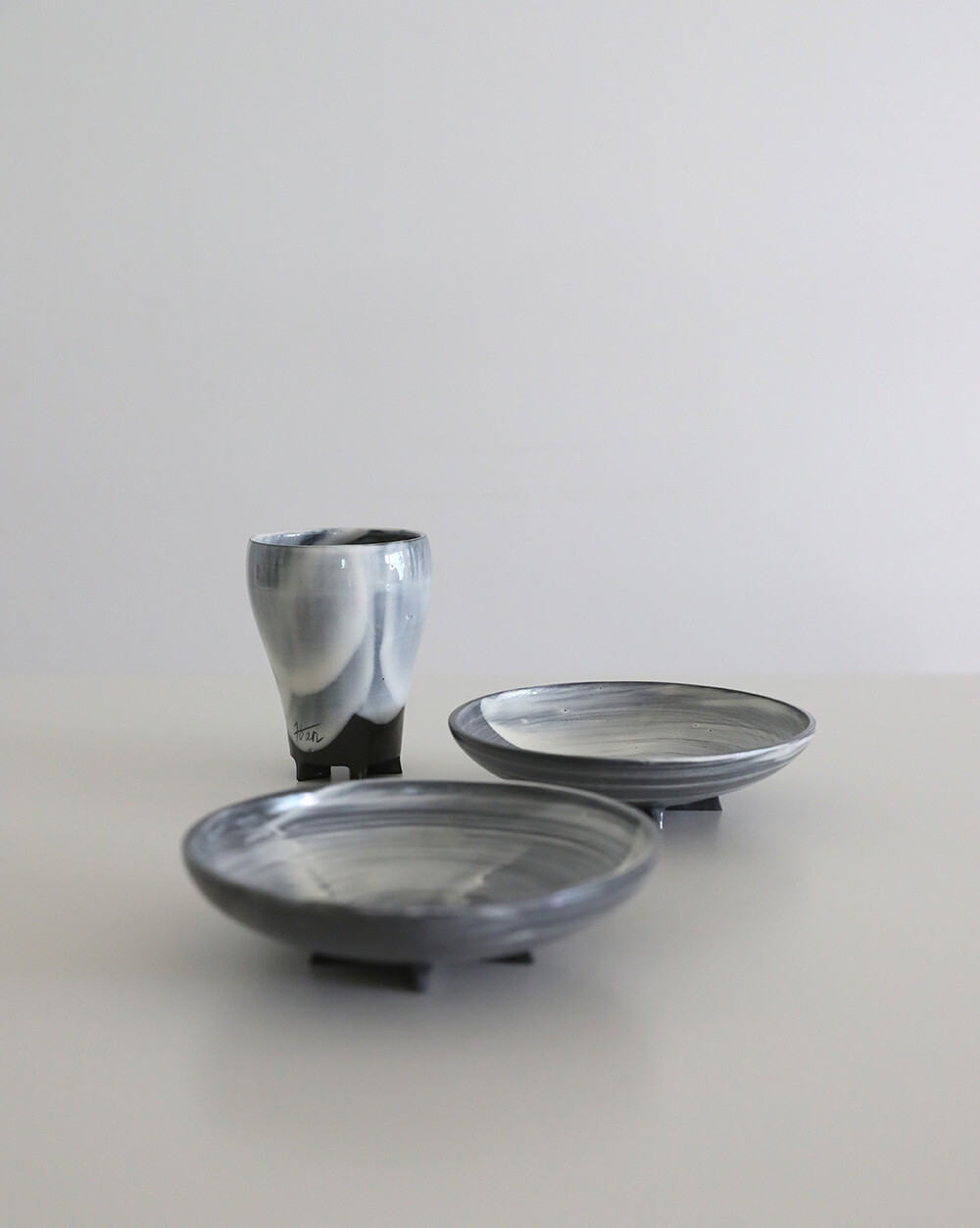 이번시리즈에서는 작가가 평소 사용하던 패턴을 단순화시켜 굽 부분에 위치시키며 형태를 완성한다. 또한 한국의 전통기법인 분장기법을 활용해 표면을 장식하여 미묘한 색감의 중첩과 여러면으로 분활된듯한 표면장식을 보여준다. 기법 특성으로 세상에 하나뿐인 나만의 자기를 만날 수 있다.