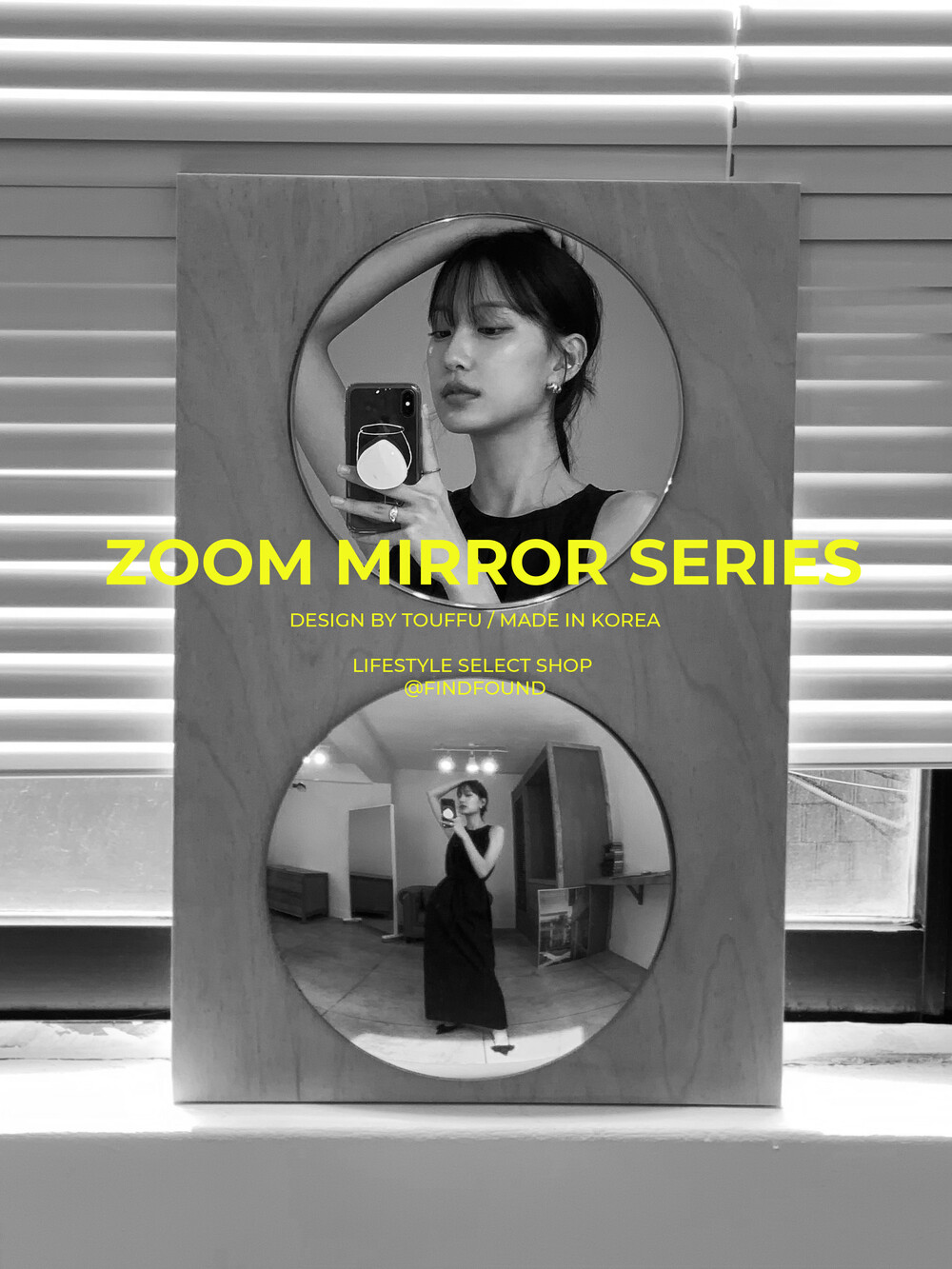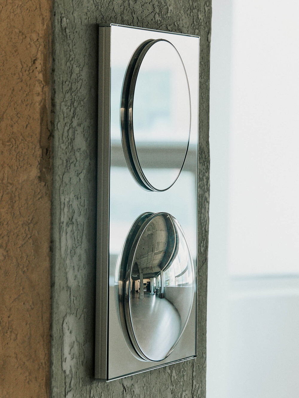 평면 거울과 볼록 거울을 혼합하여 재밌는 효과를 표현한 거울입니다. 거울의 기능은 물론 오브제로 활용하기 좋은 제품입니다.