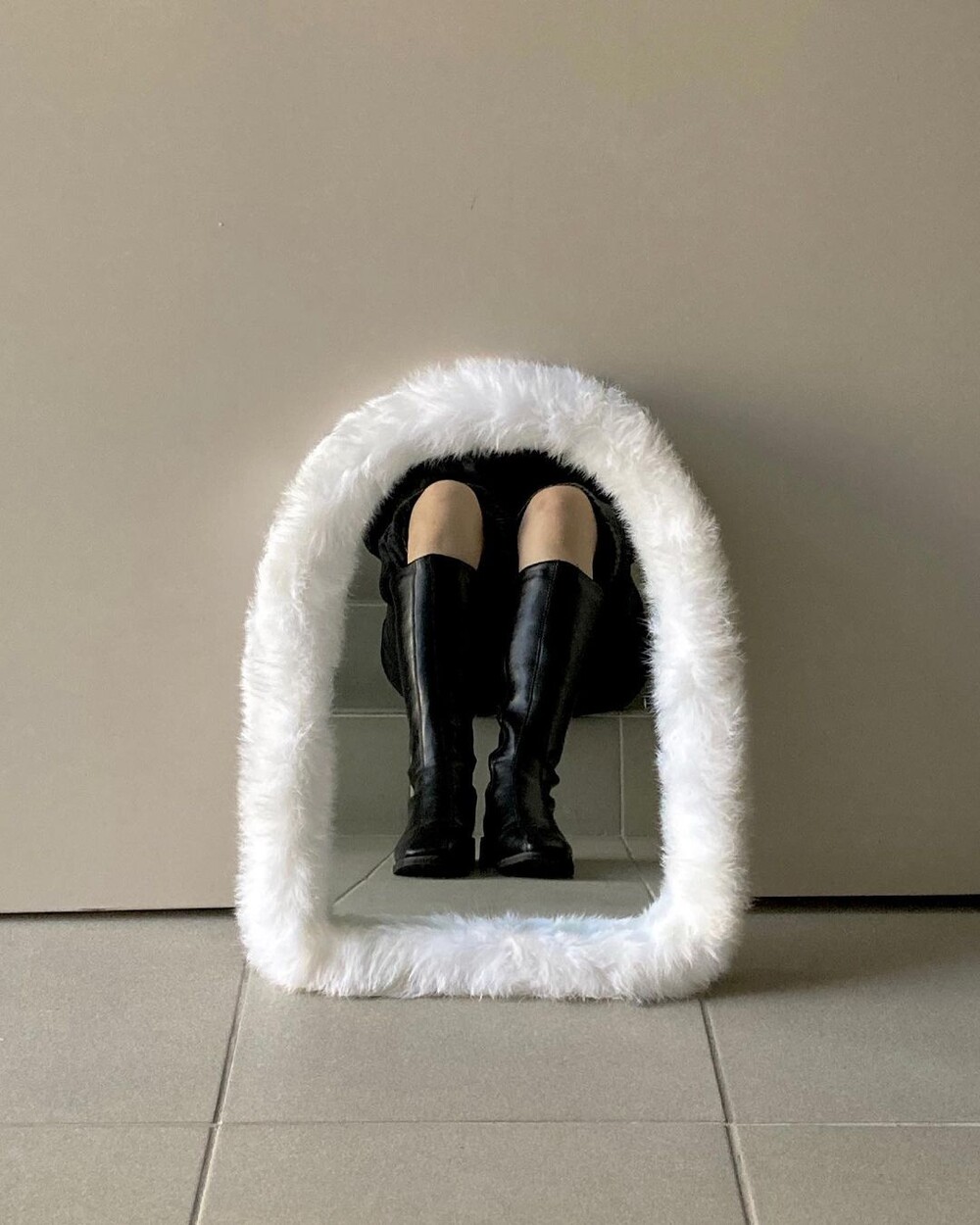 부드러운 퍼 프레임이 돋보이는 아치 프레임의 거울입니다. 벽걸이로 활용해도 좋고 스탠드로 활용해도 좋습니다. 거울 이상의 오브제 역할을 해주는 제품입니다.