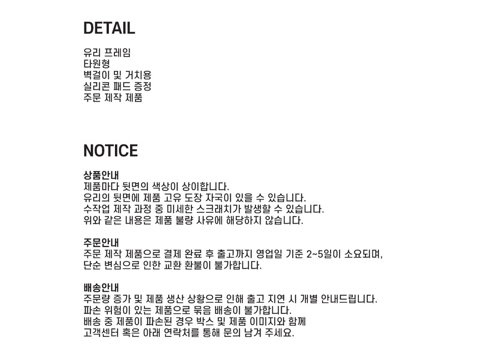- 주문 제작 상품으로 단순 변심으로 인한 교환/반품은 불가능합니다.