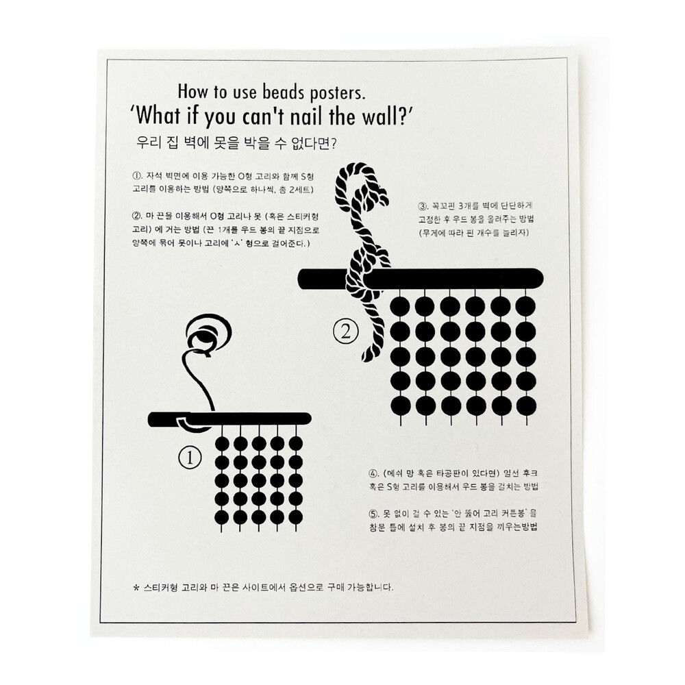 ※ 가로 40cm 이상의 비즈 포스터일 경우 꼭꼬핀과 안 뚫어 고리를 권장합니다. 스티커형 고리 사용 시 떨어질 위험이 있습니다.