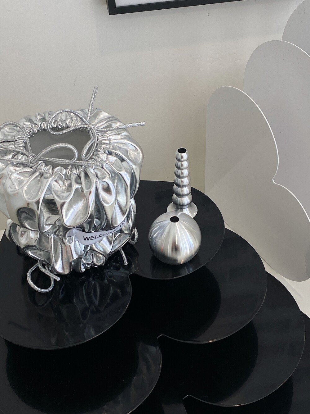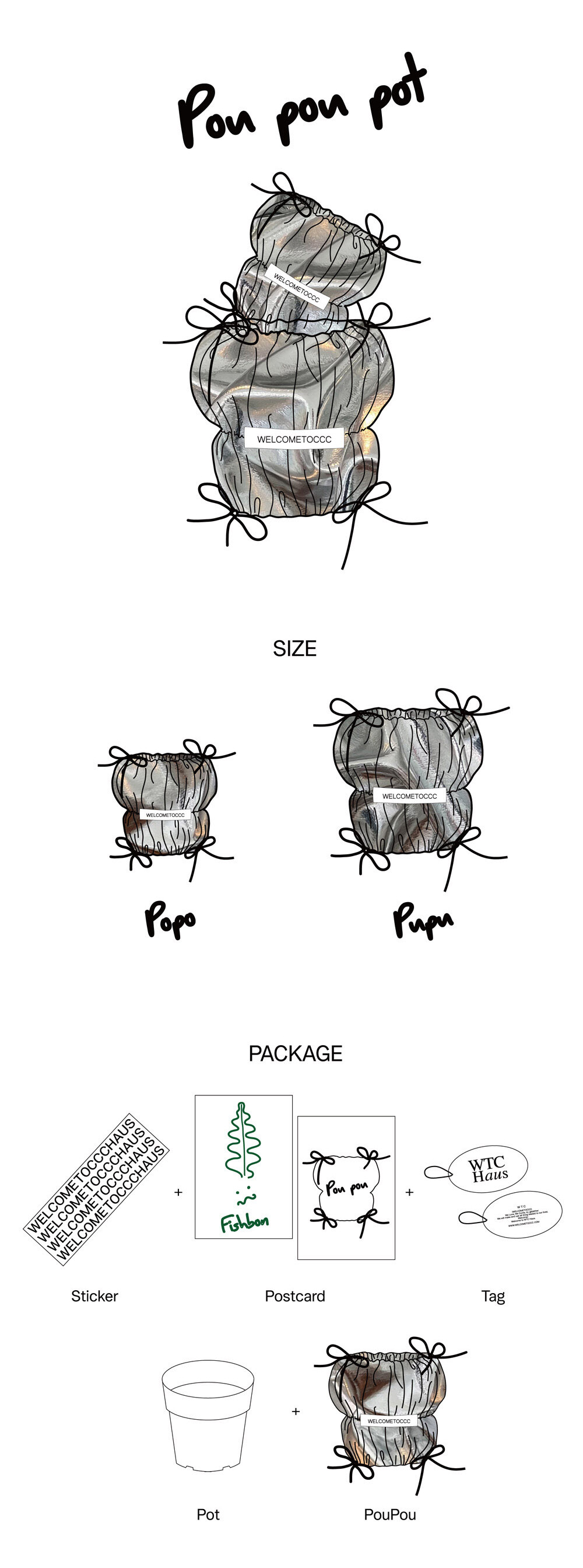 비건 레더 소재와 은사가 섞인 스트링을 사용하여 제작된 셔링 디테일의 팟 시리즈입니다. 화분과 커버는 분리가 가능하며 스트링 조절로 사이즈가 비슷한 화분과도 호환이 가능합니다. 화분 또는 악세사리 거치대로 활용할 수 있고 큰 사이즈의 경우 롤티슈 커버 등 다양한 오브제로 활용할 수 있습니다.