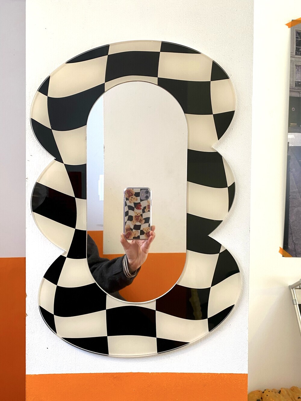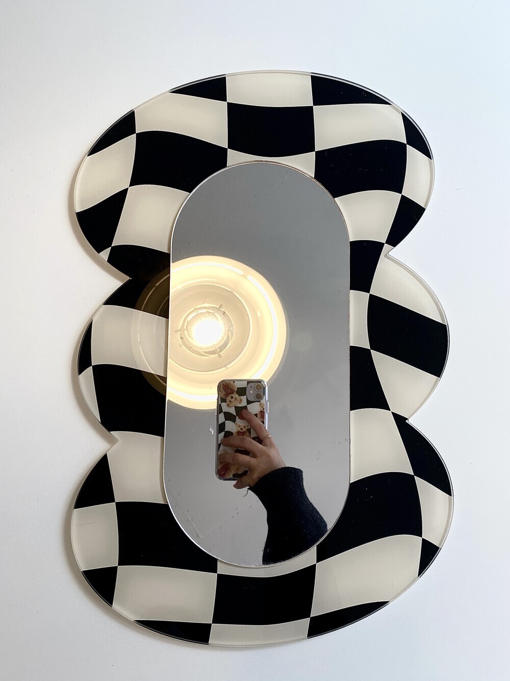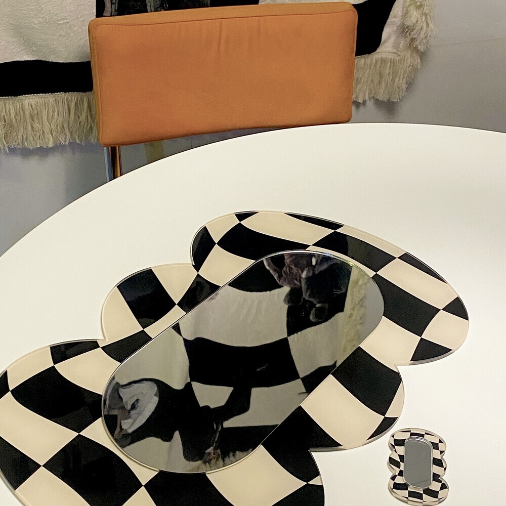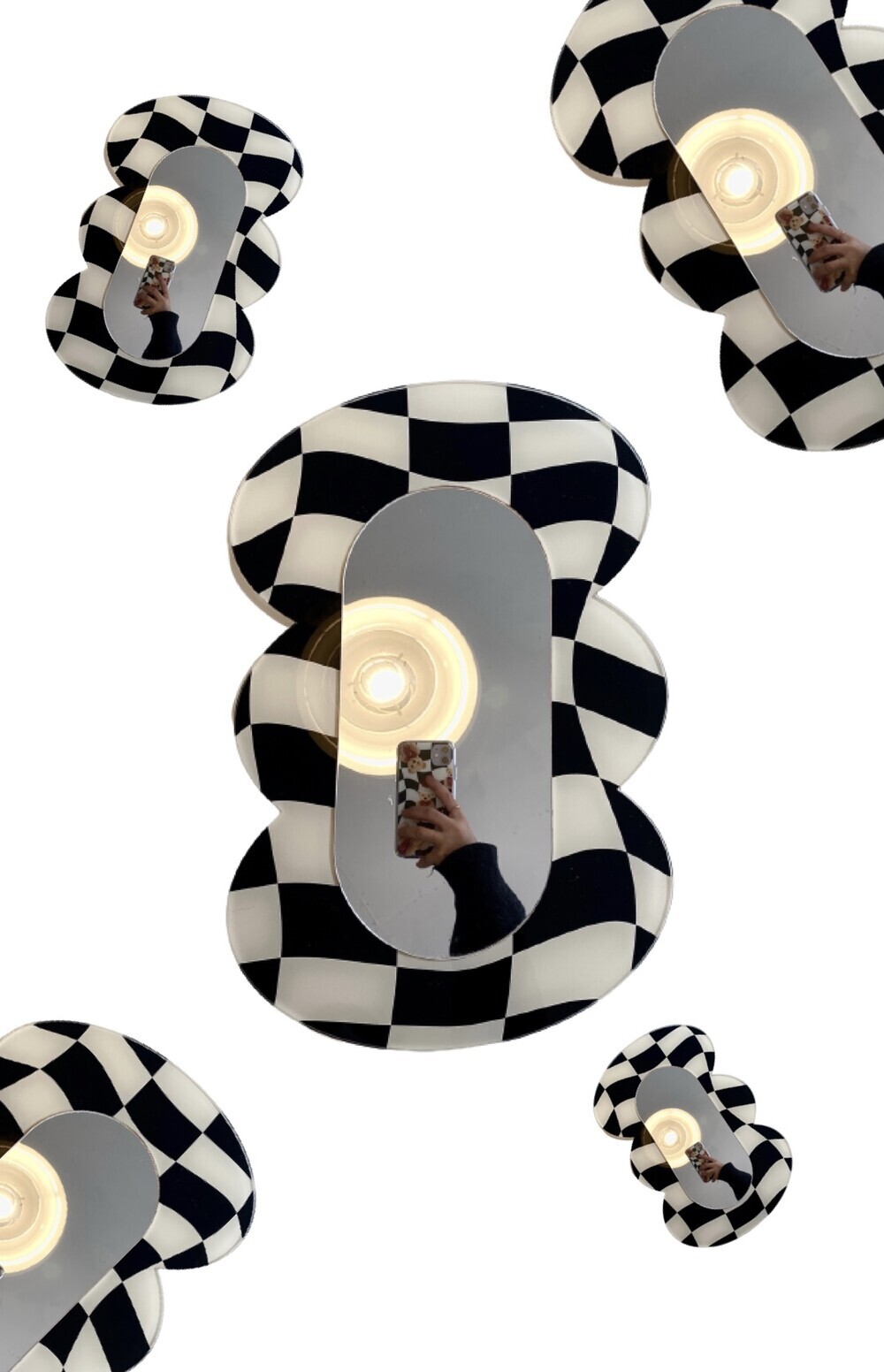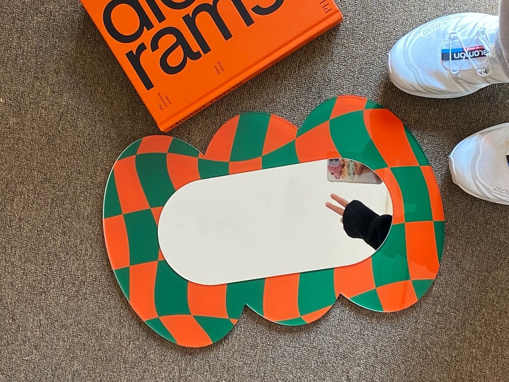 you like what의 엉뚱하면서 위트있는 감성이 묻어난 클라우드 미러입니다. 두께 5-6mm정도의 체커 아크릴판에 홈을 만들어 아크릴 거울을 부착했습니다. 아크릴 거울 특성상 약간의 왜곡은 존재할 수 있으나, 이를 방지하기 위해 두꺼운 두께의아크릴 거울을 제작했습니다. 무게 역시 가벼워 3m을 이용해벽에 부착하기도 좋고, 선반이나 바닥에 세워놓을 수 있는 거울입니다.